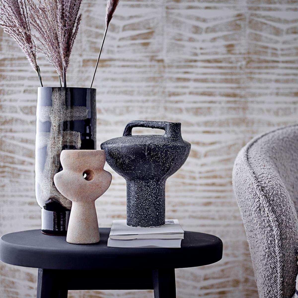 I love the Bloomingville Vefa Vase for its striking, contemporary design that adds an artistic touch to any space. Its bold black finish combined with the textured, neutral-toned pattern makes it versatile enough to work well in modern, minimalist, or even eclectic interiors. For styling, I recommend pairing it with simple, understated floral arrangements or greenery to let the design stand out. It’s also a great statement piece on a side table, mantel, or as part of a centrepiece on a dining table. For added visual interest, stacking or grouping with other vases of varying heights can create an effortlessly stylish vignette.