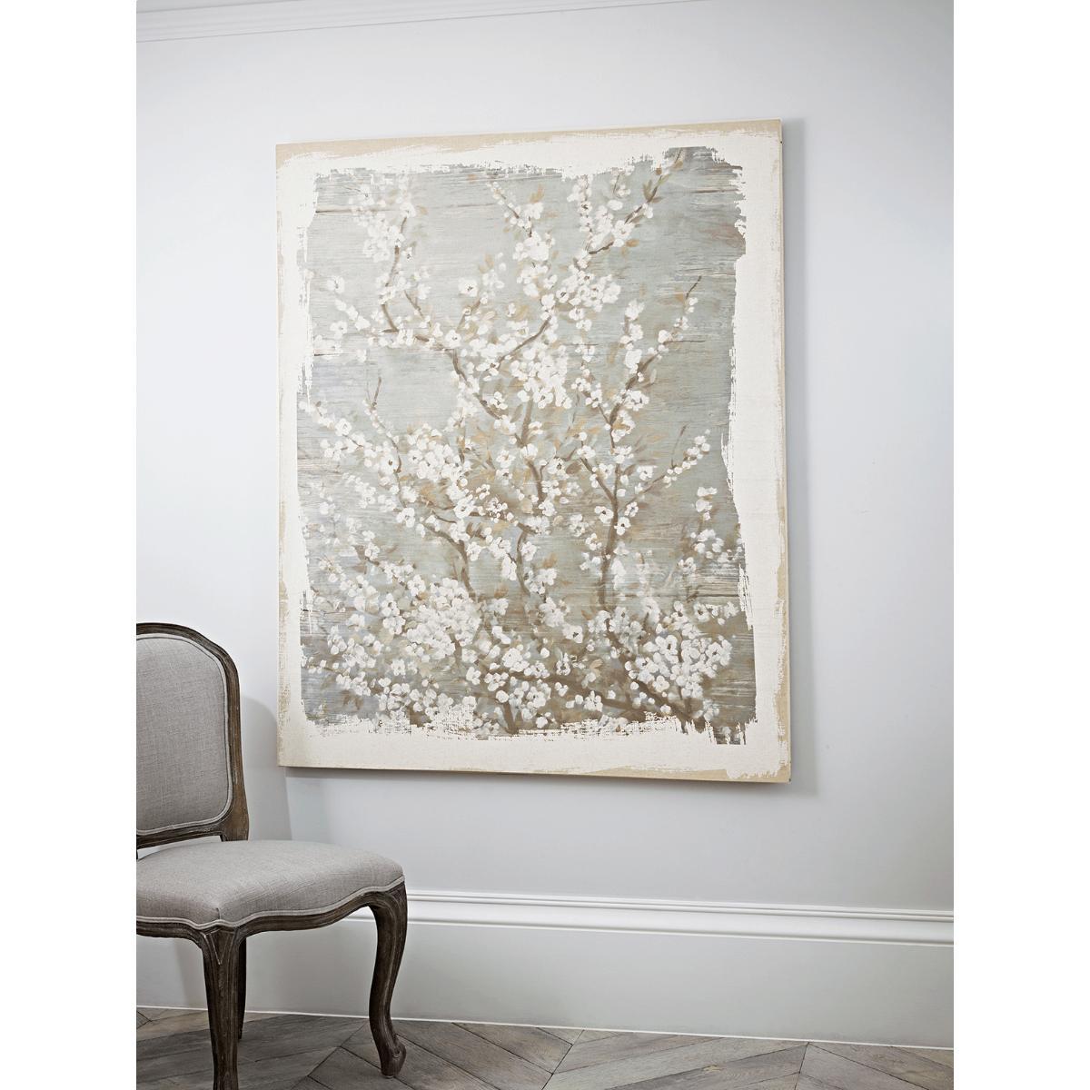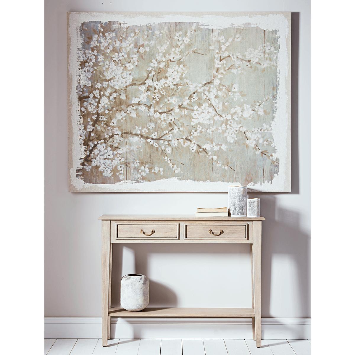 I love this blossom canvas for its soft, neutral palette and delicate depiction of blooms, which makes it very versatile in both modern and traditional interiors. It works particularly well in light, airy spaces like living rooms, bedrooms, or hallways where you want to add a touch of subtle elegance without overwhelming the decor. For styling, consider pairing it with natural materials such as timber or linen to enhance its understated charm. Placing it above a console table, as shown here, creates a balanced focal point, but it also works nicely over a bed or sofa. To keep the look cohesive, add minimal accessories - perhaps a few simple ceramics or plants - to complement the artwork without distracting from its calming presence.