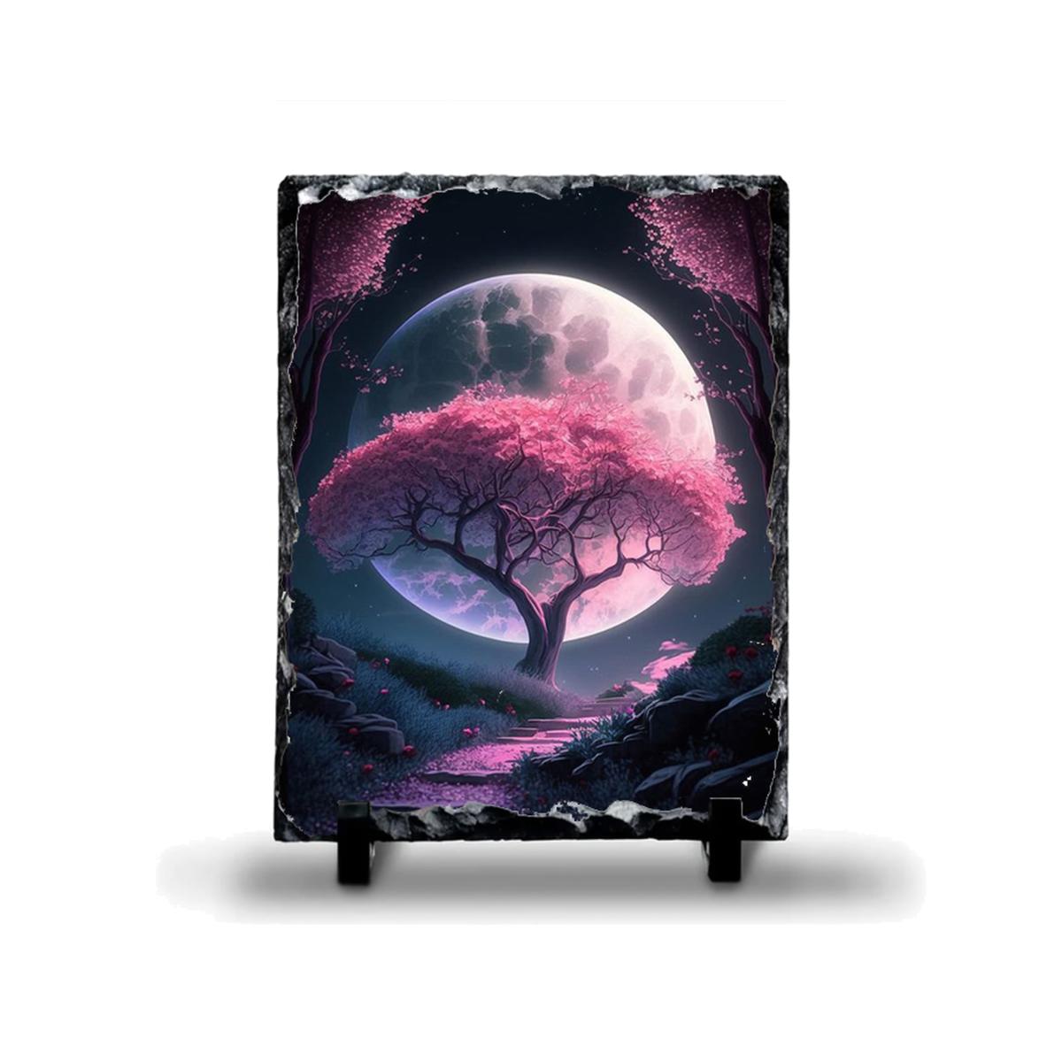 This Blossom tree moon photo rock slate is a unique and stylish addition to your home decor collection. The rock slate is made of high-quality Material, this is made of durable rock slate, this photo frame ensures longevity and a modern yet unique look. The rock slate is perfectly sized at 15 x 20 cm, this frame is ideal for showcasing this beautifully printed elephants photo. Comes with a stand for easy display on any tabletop or shelf, adding charm to any room.