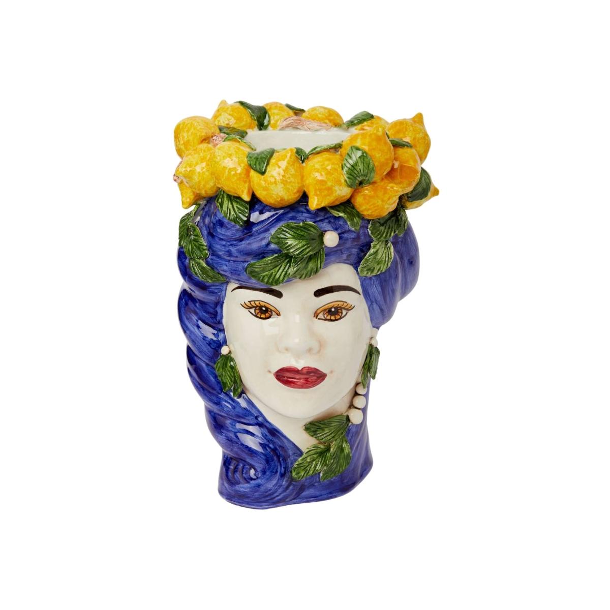 Hand-painted Sicilian ceramic vase in the shape of a woman’s head. Who is she? Read below…