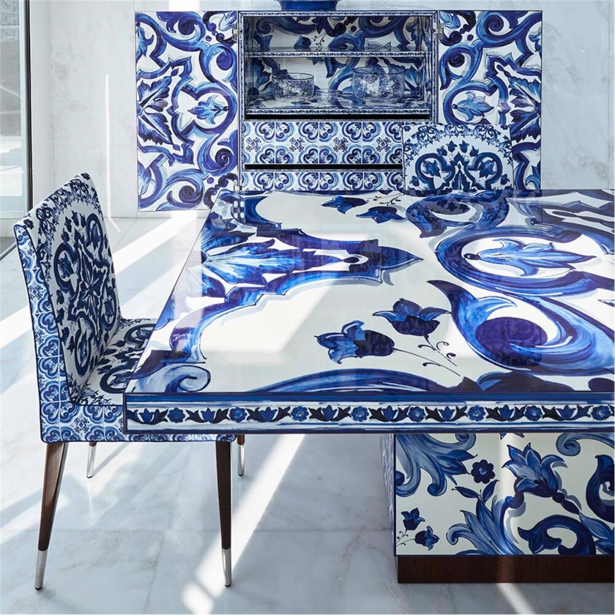 Bring Dolce & Gabbana’s signature opulent prints into your dining space with this Iride chair. Inspired by majolica art, this striking design features a blue and white pattern, complete with glossy wooden legs.