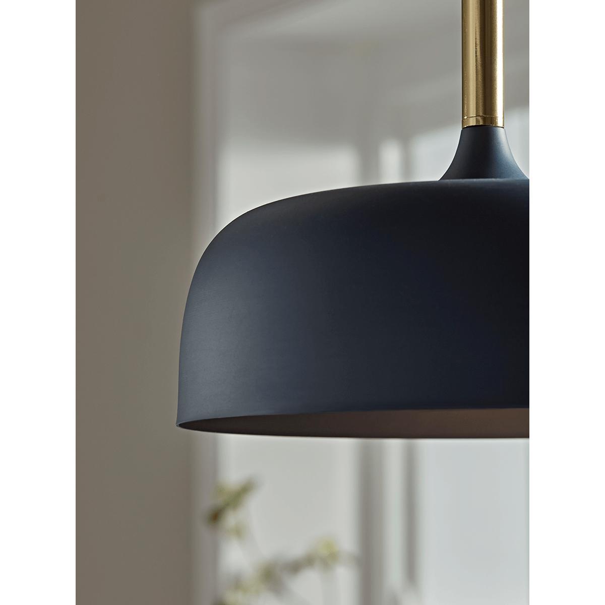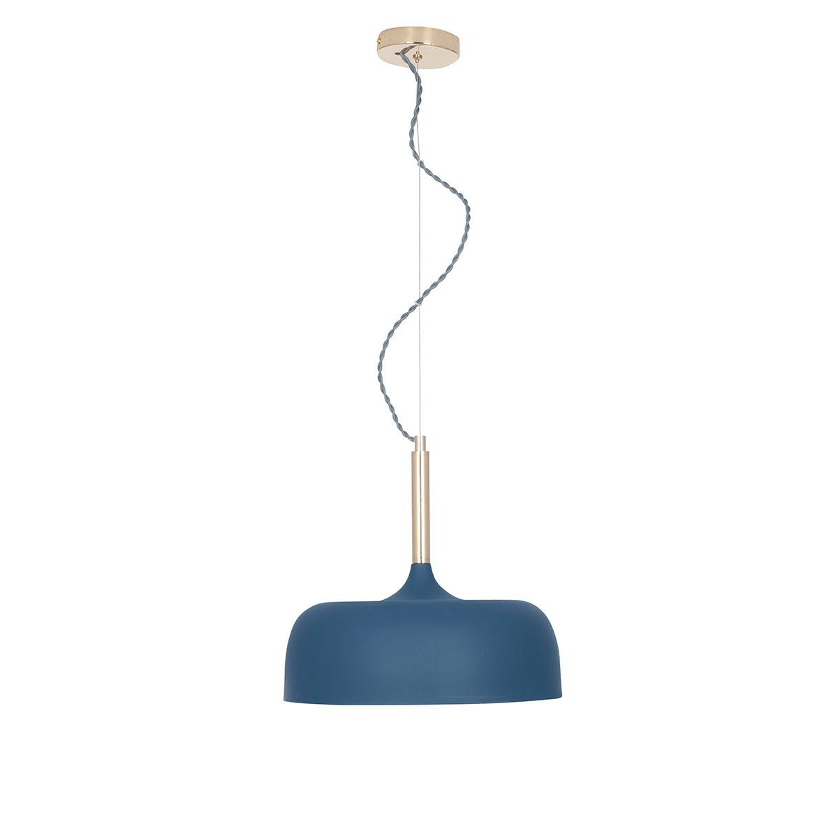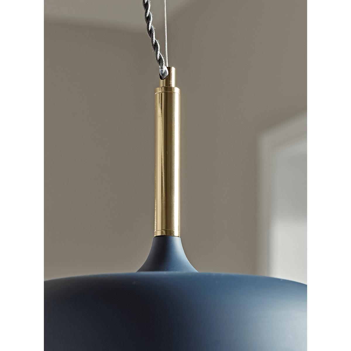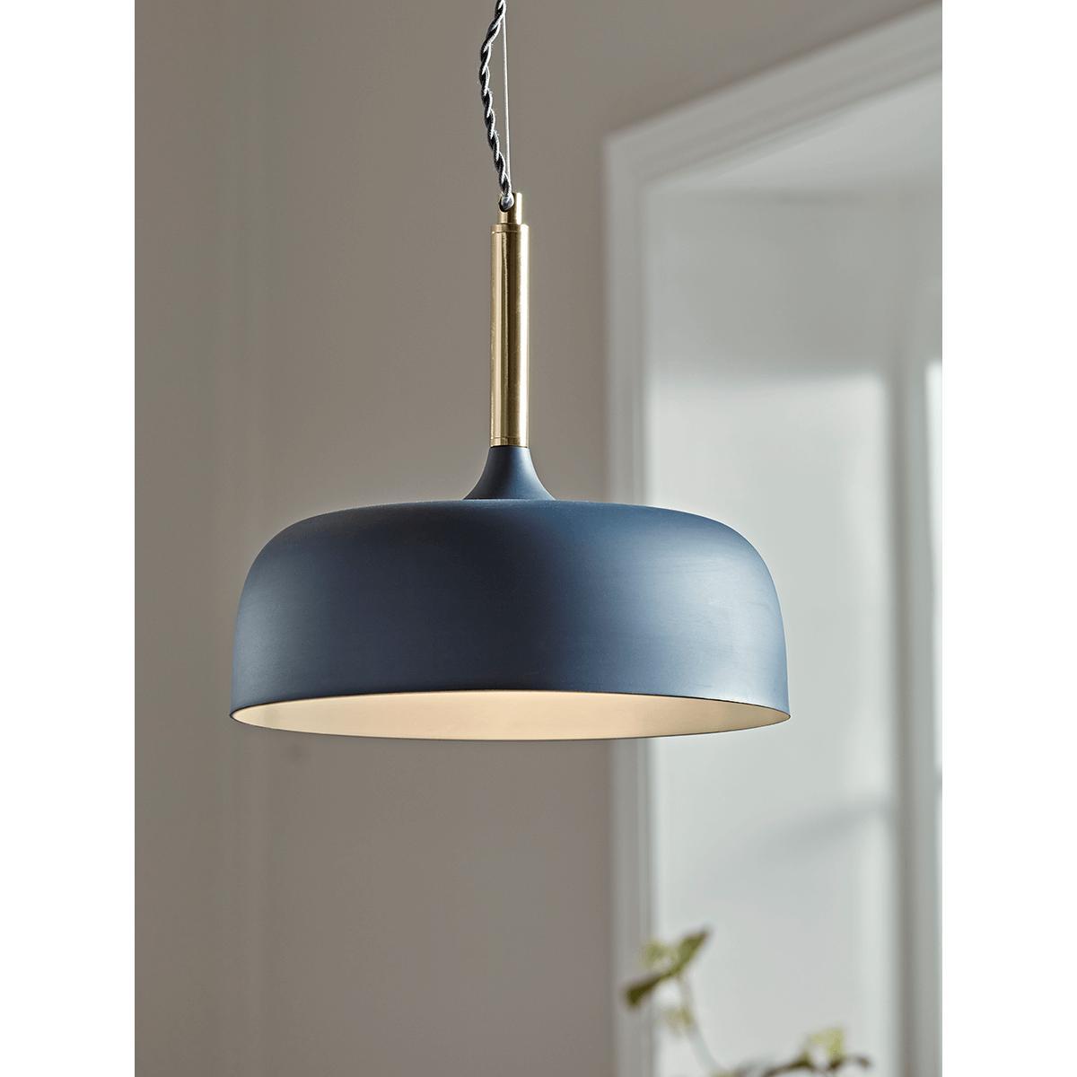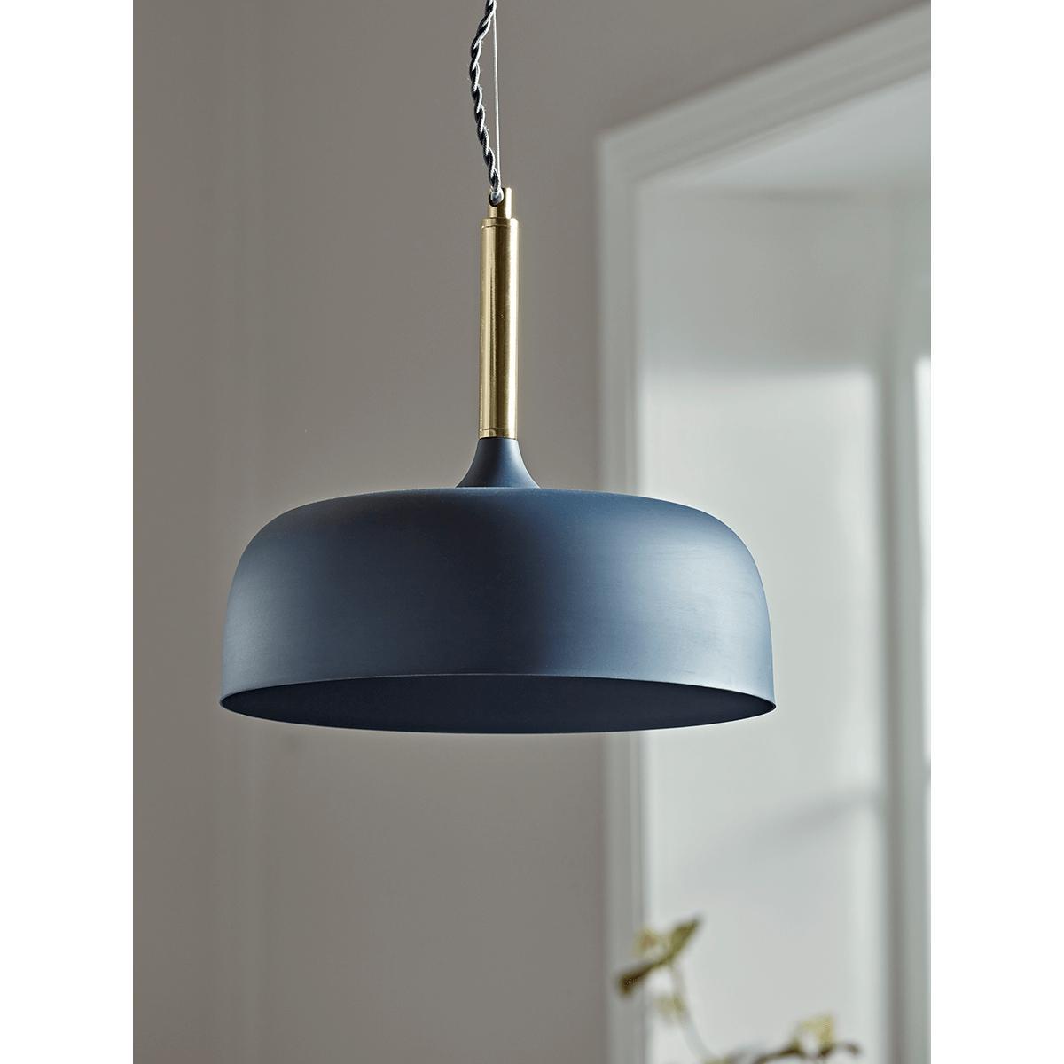 With an elegant, wide shade in deep, matte blue, our simple pendant light will add a fabulous feature to your lighting look. Each shade has a blue inner to enhance the light and a slim brass top for a metallic glow.