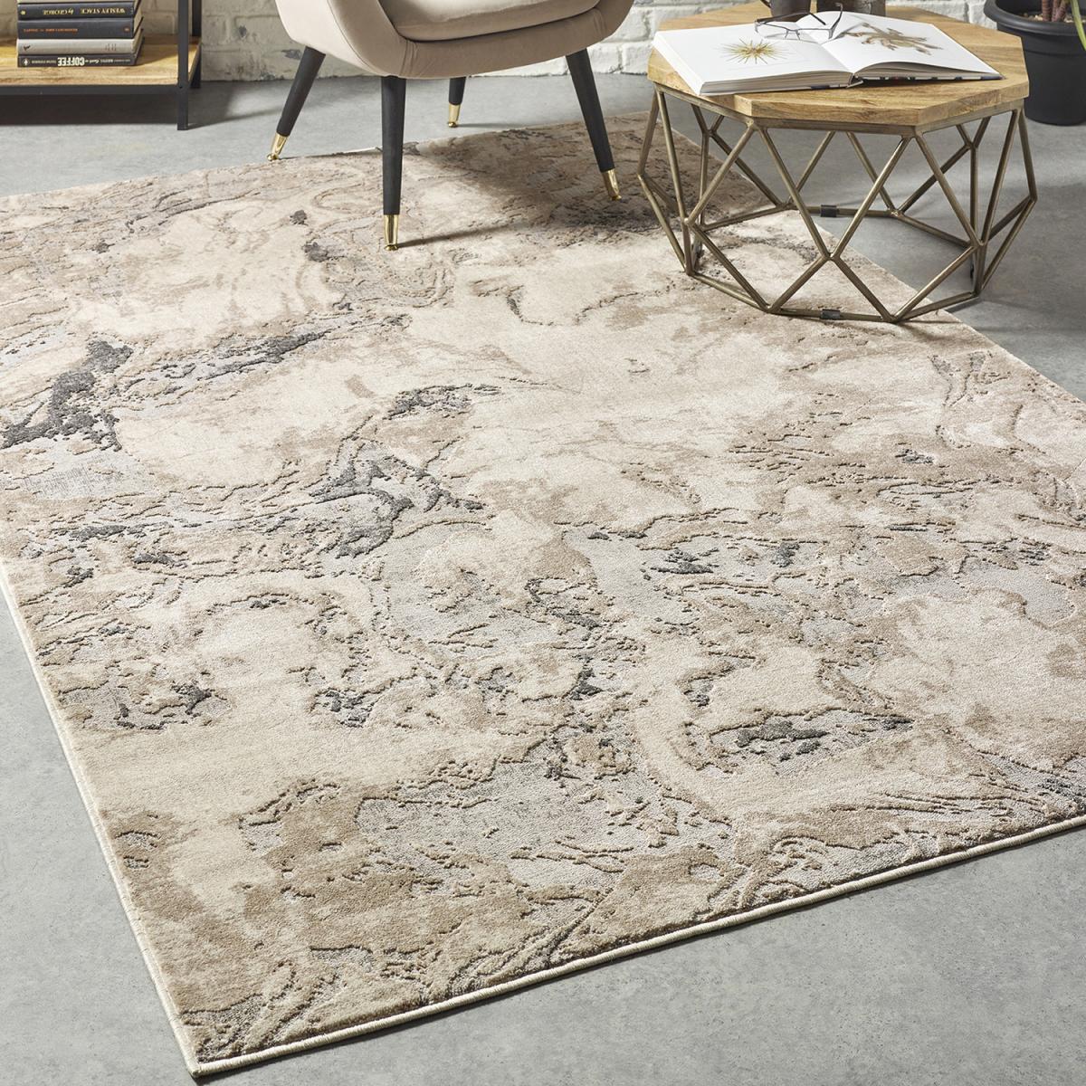 Our beautiful Marble rug has a stunning marble effect design made from natural beige, brown and grey tones with added fringe detailing. This rug is expertly crafted using a blend of polypropylene and polyester, enabling a durable and easy clean ability while still being lovely and soft. Vacuumspot clean only. Dont use beater bar. Professional cleaning recommended.