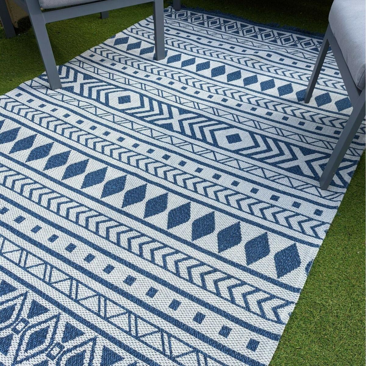 Blue Aztec Indoor Outdoor Patio Rug - Gala - Blue / 220cm