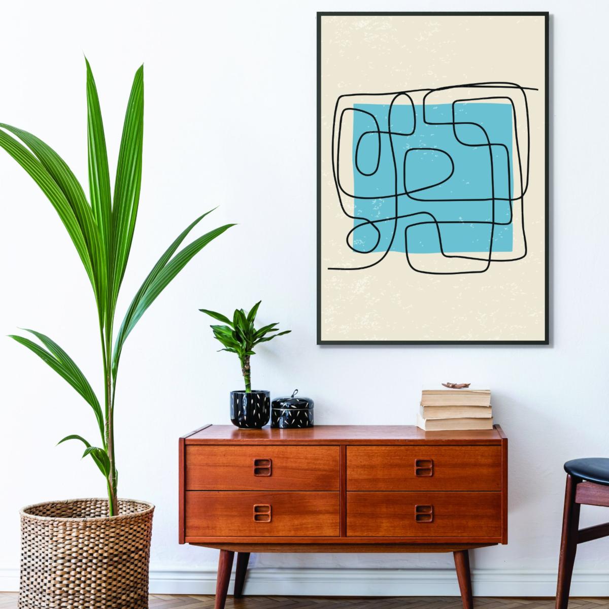 I really like this piece because of its clean, graphic style and calming palette, making it a versatile addition to a variety of interiors. It works particularly well in minimalist or modern spaces where its simple lines can stand out, but it would also complement a Scandinavian-inspired room thanks to its subtle colour scheme. When styling, consider placing it above a neutral sofa or console table to create a focal point, and pair it with other understated accessories to keep the look cohesive. Its small size makes it ideal for smaller walls or as part of a gallery wall, giving you flexibility without overwhelming the space.