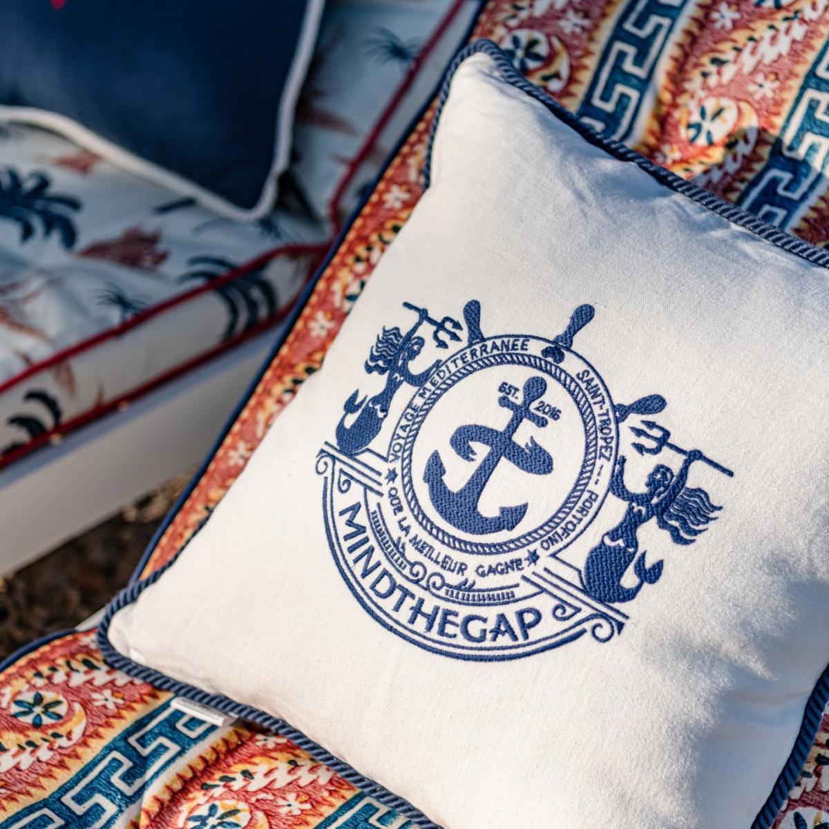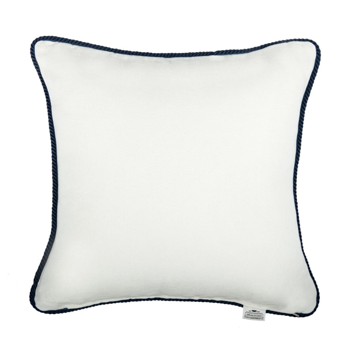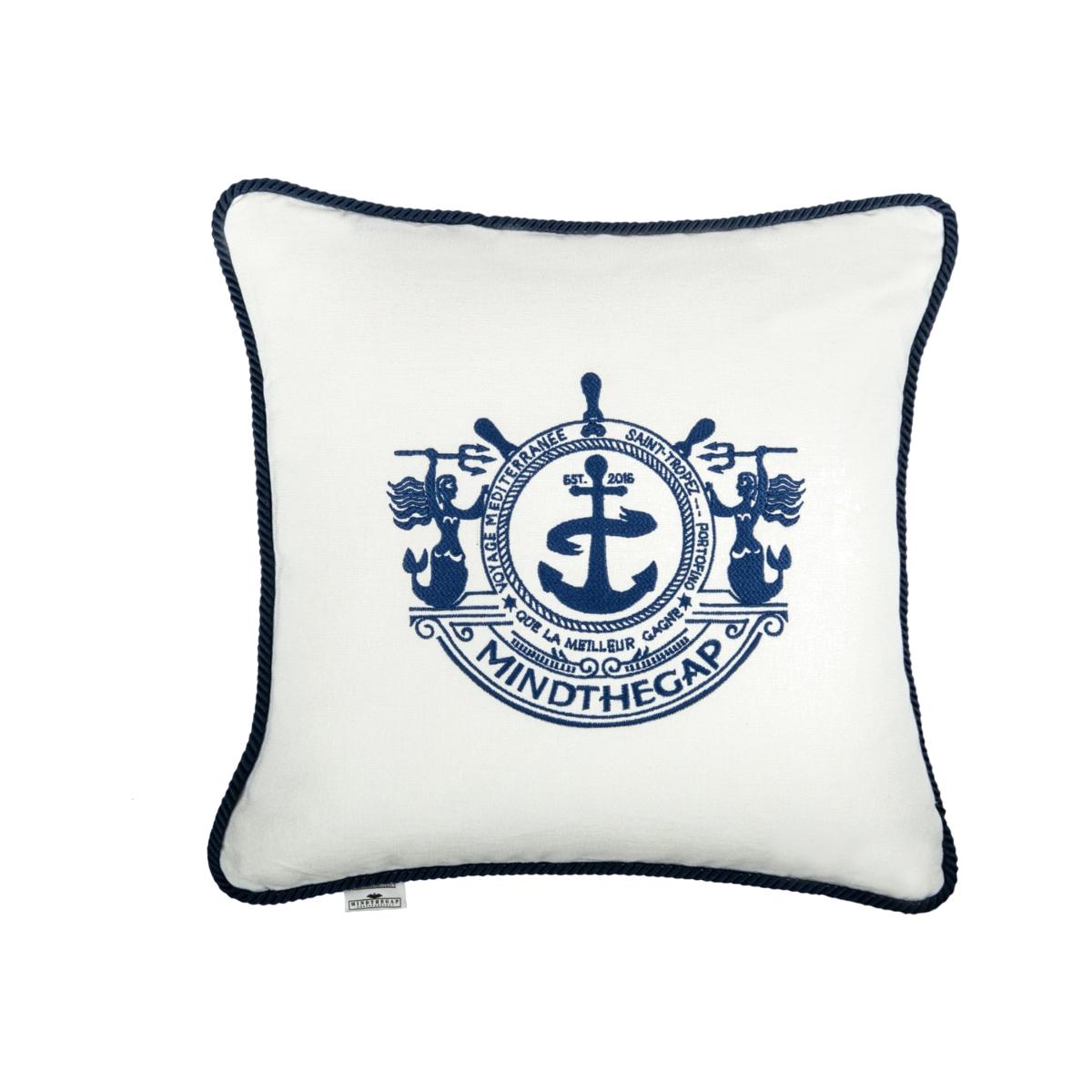 Inspired by the fascinating yachting lifestyle, the VOYAGE Linen Cushion takes you on a blissful Mediterranean journey. Beautiful details and maritime symbols are blended in an indigo blue statement embroidery, the same shade as the rope border it’s finished with. Elegant and charming, the cushion comes with feather filling.