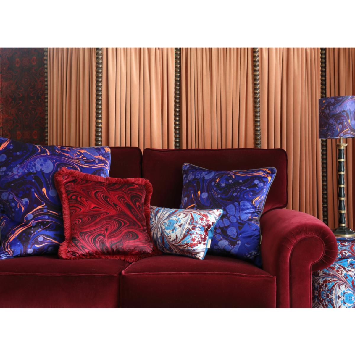 We loved this design in our larger style so much that we have now added it as a smaller square. The rich Sapphire Marbled design is based on one of Susi's marbled papers and comes with a matching silk shade for richly coloured and exquisite interior styling...