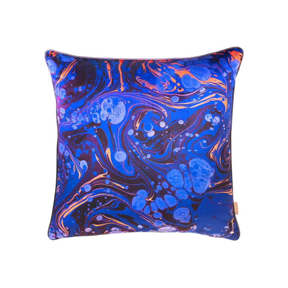 Blue / Black / Yellow Sapphire Marbled Velvet Cushion One Size Susi Bellamy