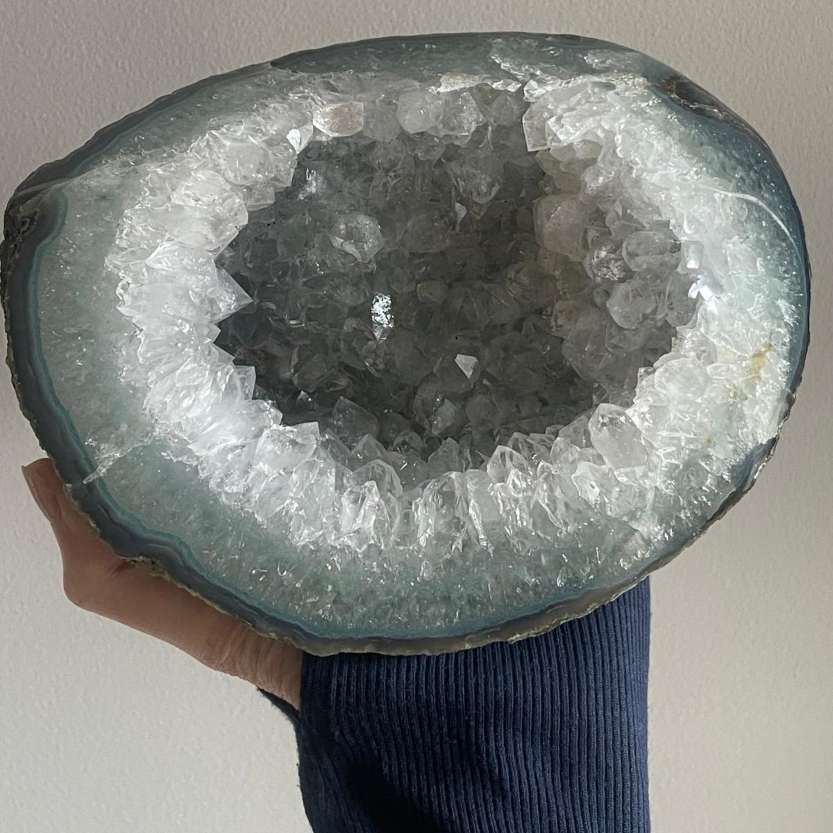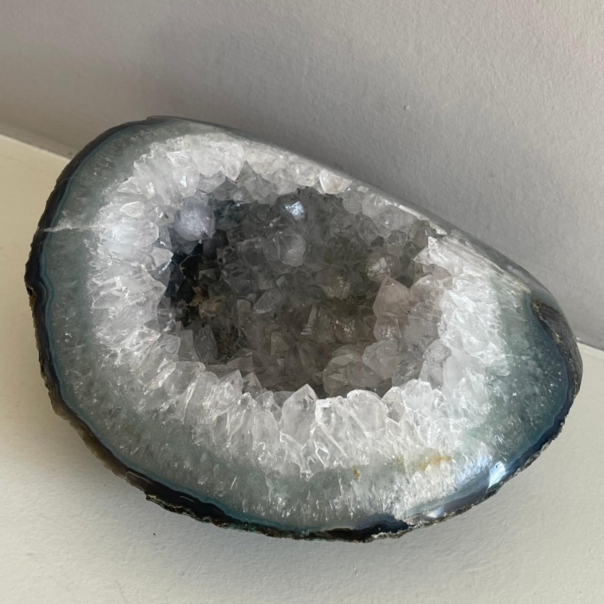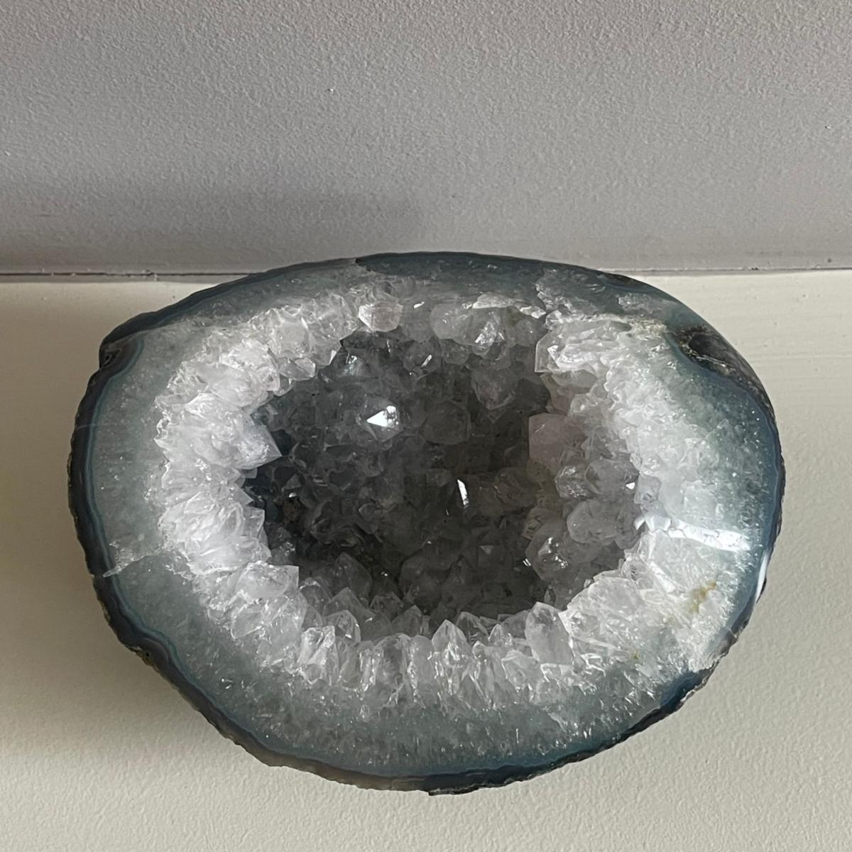 Agate is an excellent stone for rebalancing and harmonising body, mind and spirit. It cleanses and stabilises the aura, eliminating and transforming negativity. Agate enhances mental function, improving concentration, perception and analytical abilities. It soothes and calms, healing inner anger or tension and creates a sense of security and safety. You can use these healing crystal in your meditation practice, crystal grids, altar, during prayer, for rituals, and in reiki healing, housewarming. It is also a great gift idea. Agate enhances mental function, improving concentration, perception and analytical abilities. Chakra: All Size: 20cm length x 17cm width Weight: 2.65kg Origin: Rio Grande do Sul, Brazil