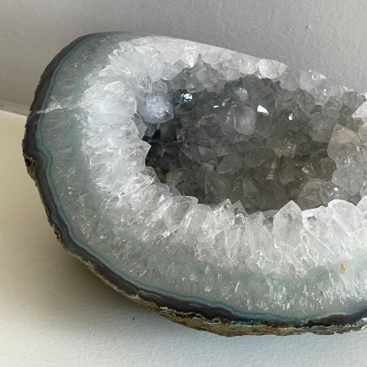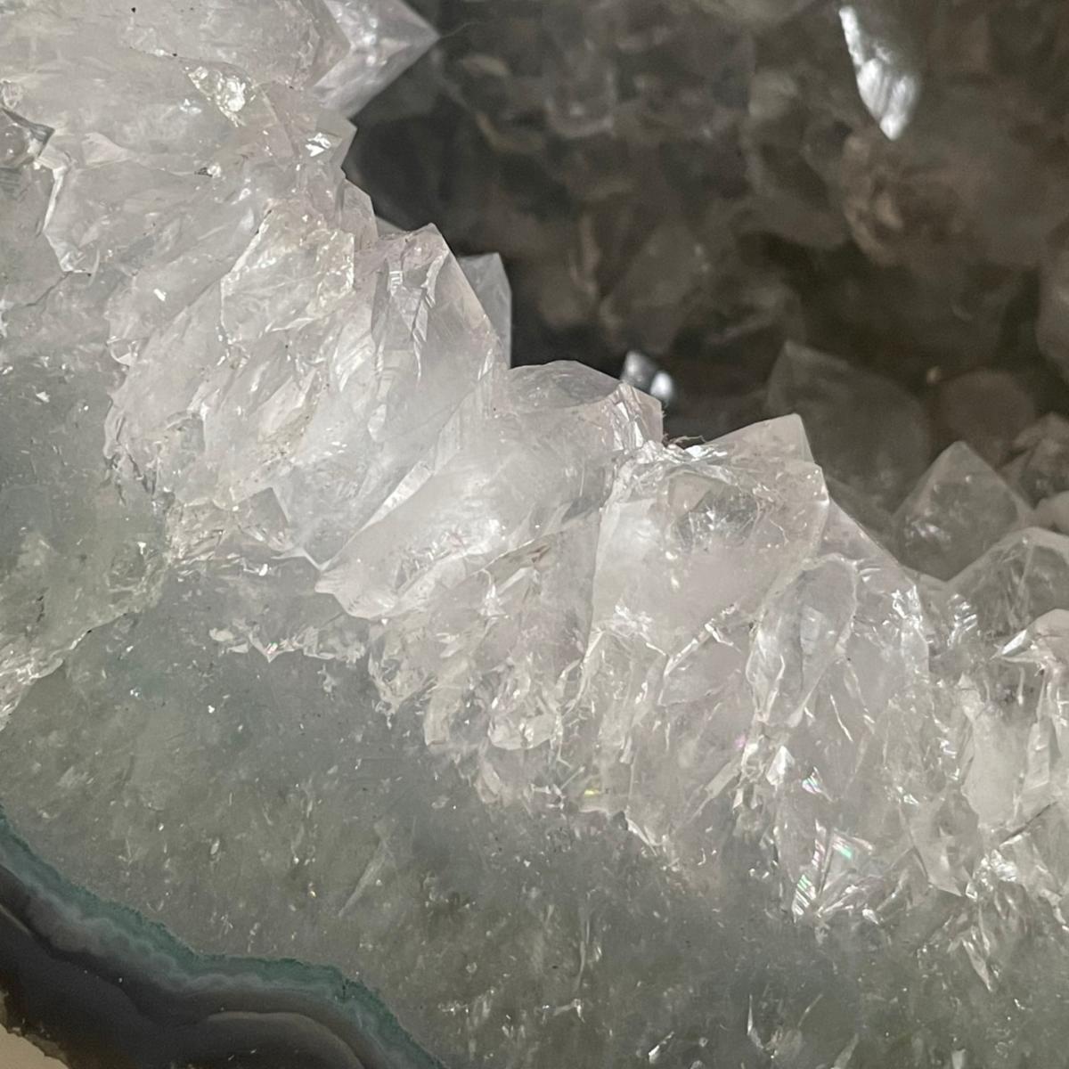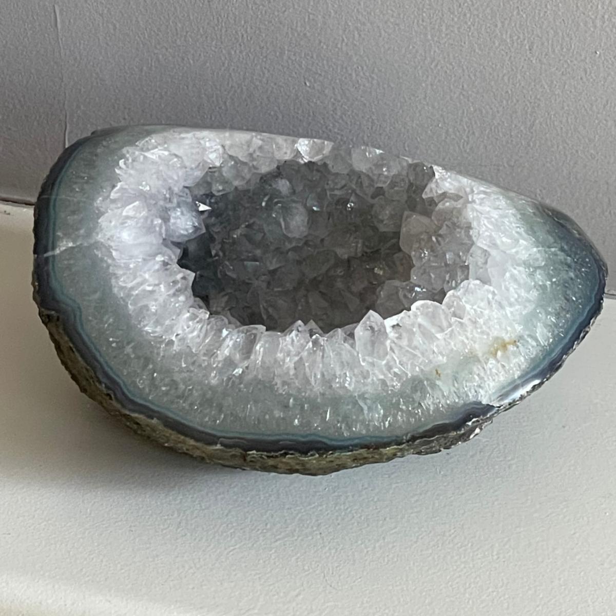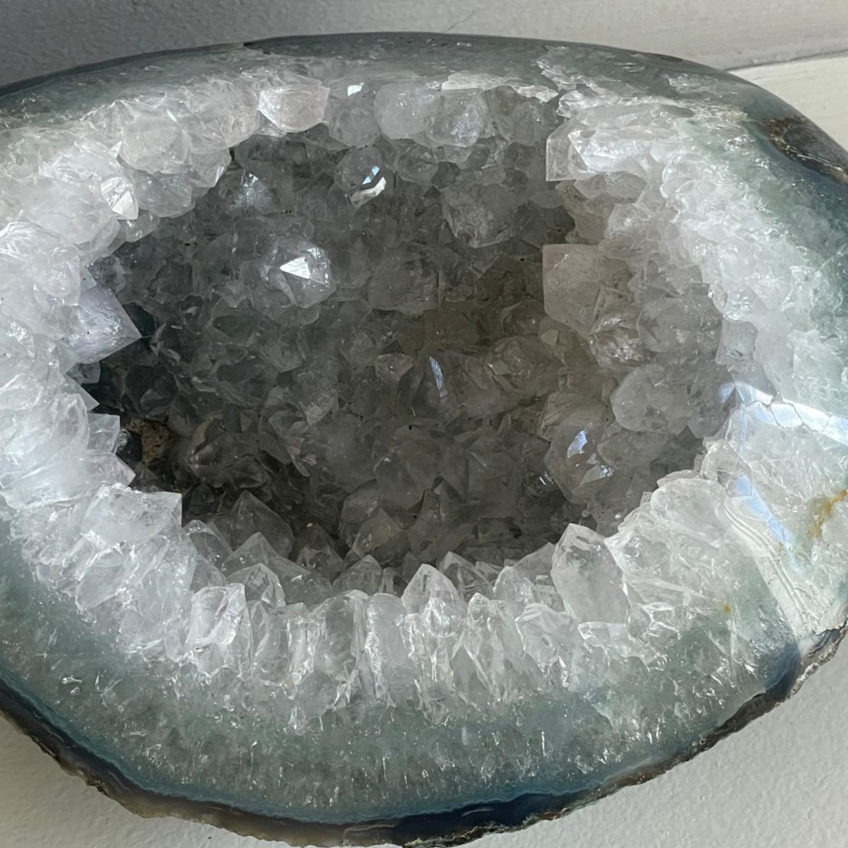 Agate is an excellent stone for rebalancing and harmonising body, mind and spirit. It cleanses and stabilises the aura, eliminating and transforming negativity. Agate enhances mental function, improving concentration, perception and analytical abilities. It soothes and calms, healing inner anger or tension and creates a sense of security and safety. You can use these healing crystal in your meditation practice, crystal grids, altar, during prayer, for rituals, and in reiki healing, housewarming. It is also a great gift idea. Agate enhances mental function, improving concentration, perception and analytical abilities. Chakra: All Size: 20cm length x 17cm width Weight: 2.65kg Origin: Rio Grande do Sul, Brazil