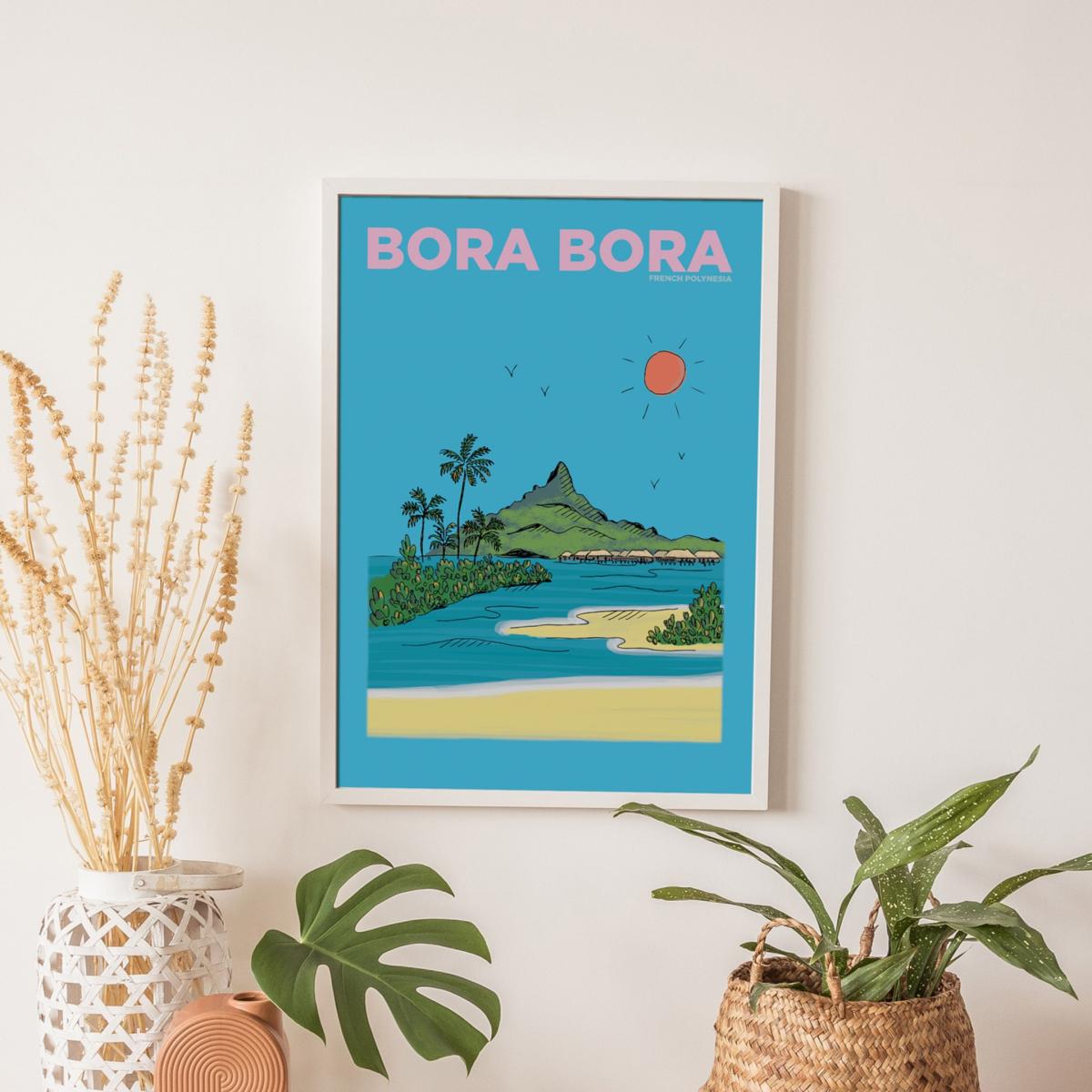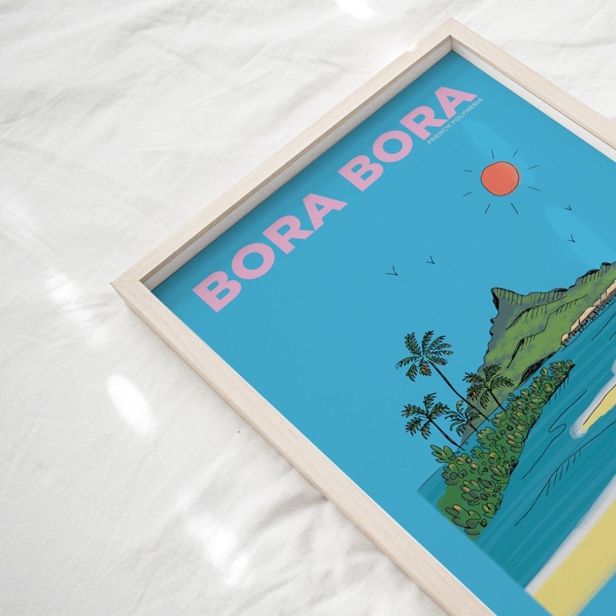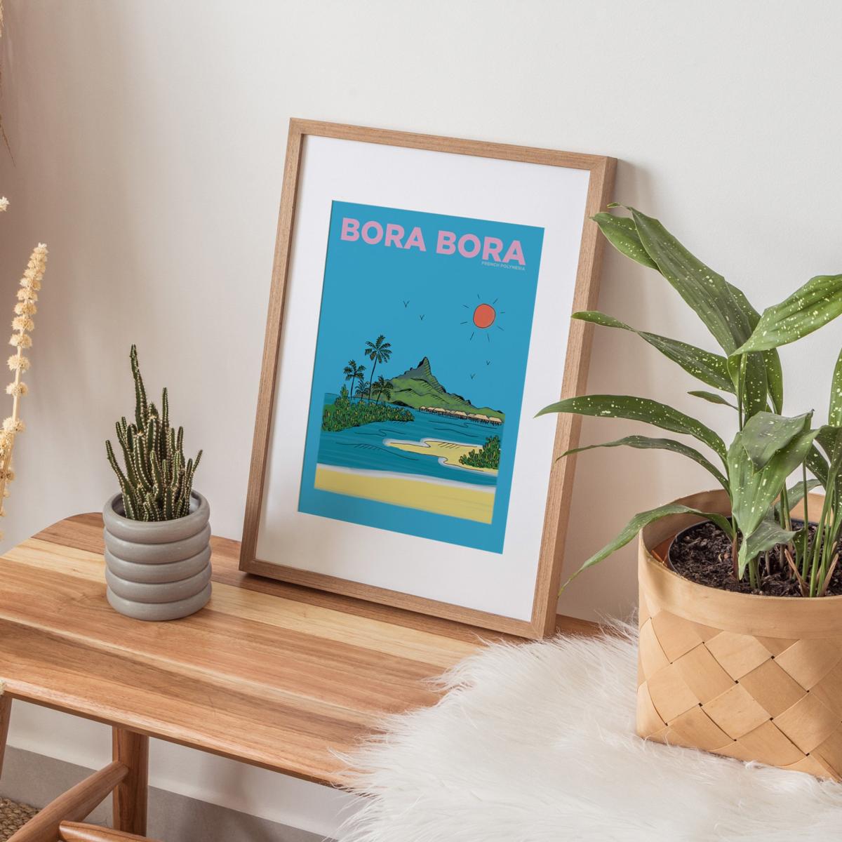 Our Summer Escapes Travel Prints collection showcases some of the world’s favourite travel destinations, such as beautiful Bora Bora. Nestled in the South Pacific, Bora Bora is a popular luxury holiday resort, known for it’s over-water bungalows and scuba-diving. The artwork incorporates our signature illustration style along with vibrant colours and bold typography. It’s always summer somewhere.