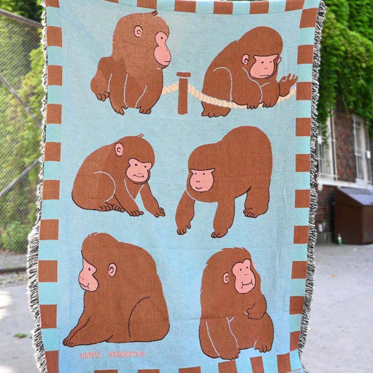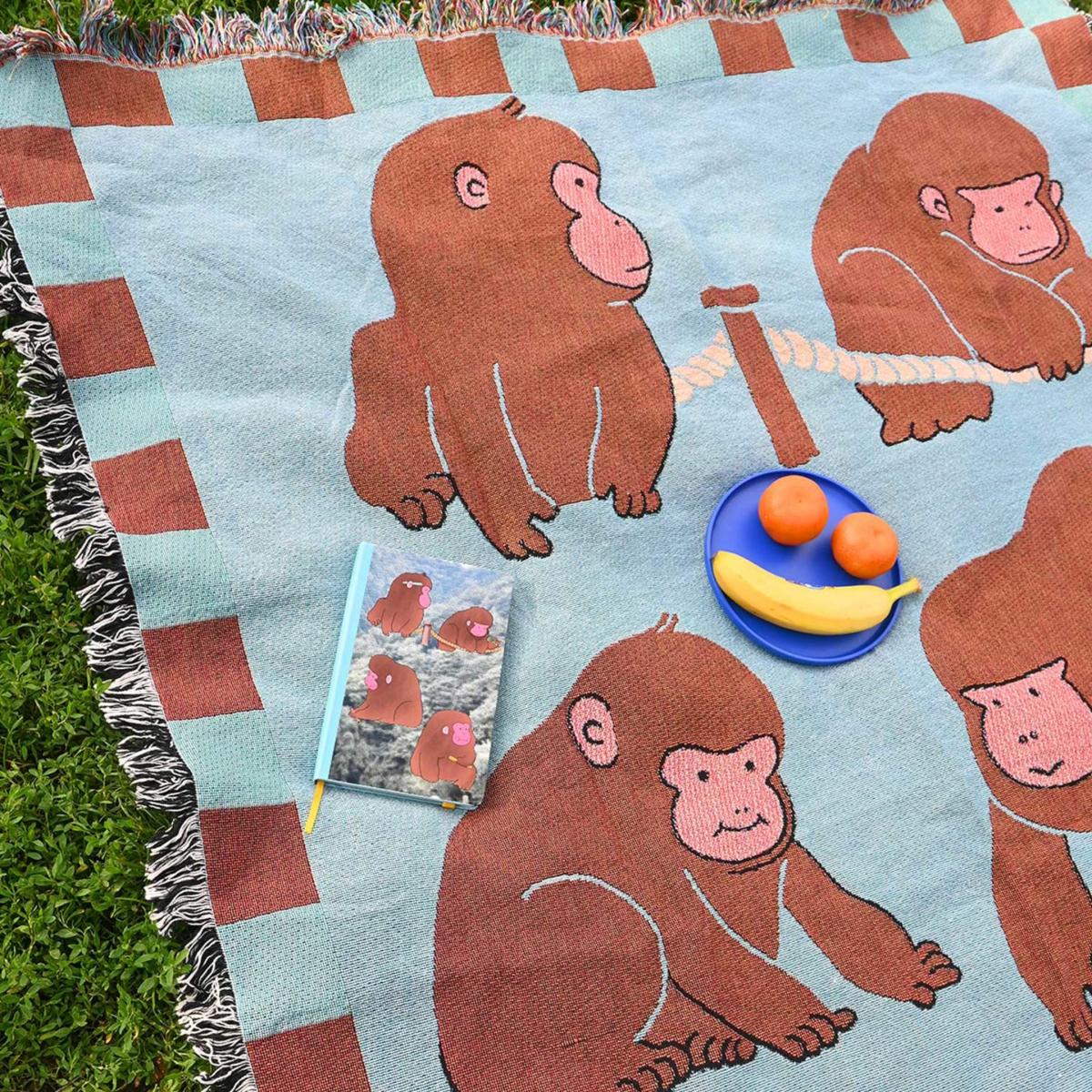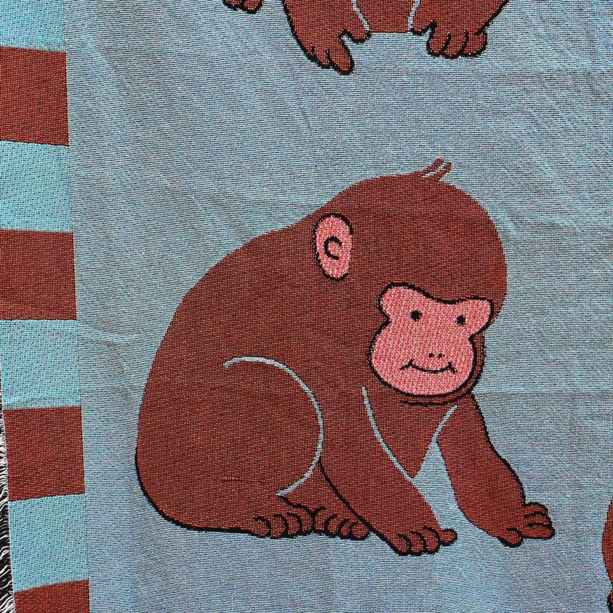 Macaques at play! Macaques at play! 💕🐵🩵✨ Soft Tapestry – This is a huggable, pre-washed soft fabric that is perfect for a multitude of uses. Have a picnic & sunbathe at the park, cozy up on your couch, or hang on your wall! 100% Cotton (Mix of spun cotton and recycled cotton). OEKO-TEX Standard 100 certified Made in the U.S.A.