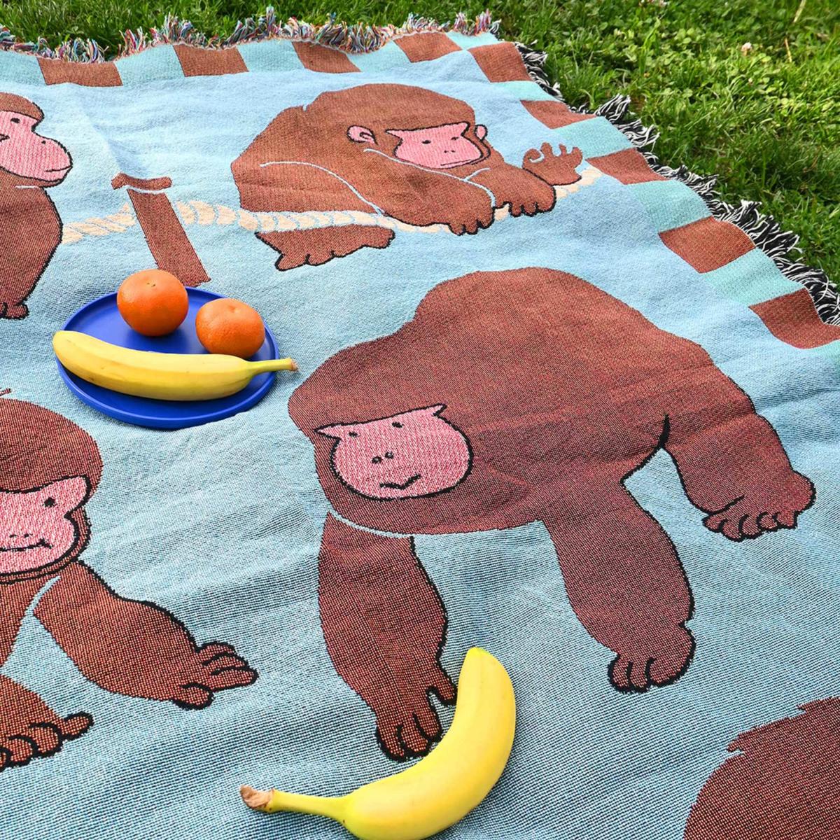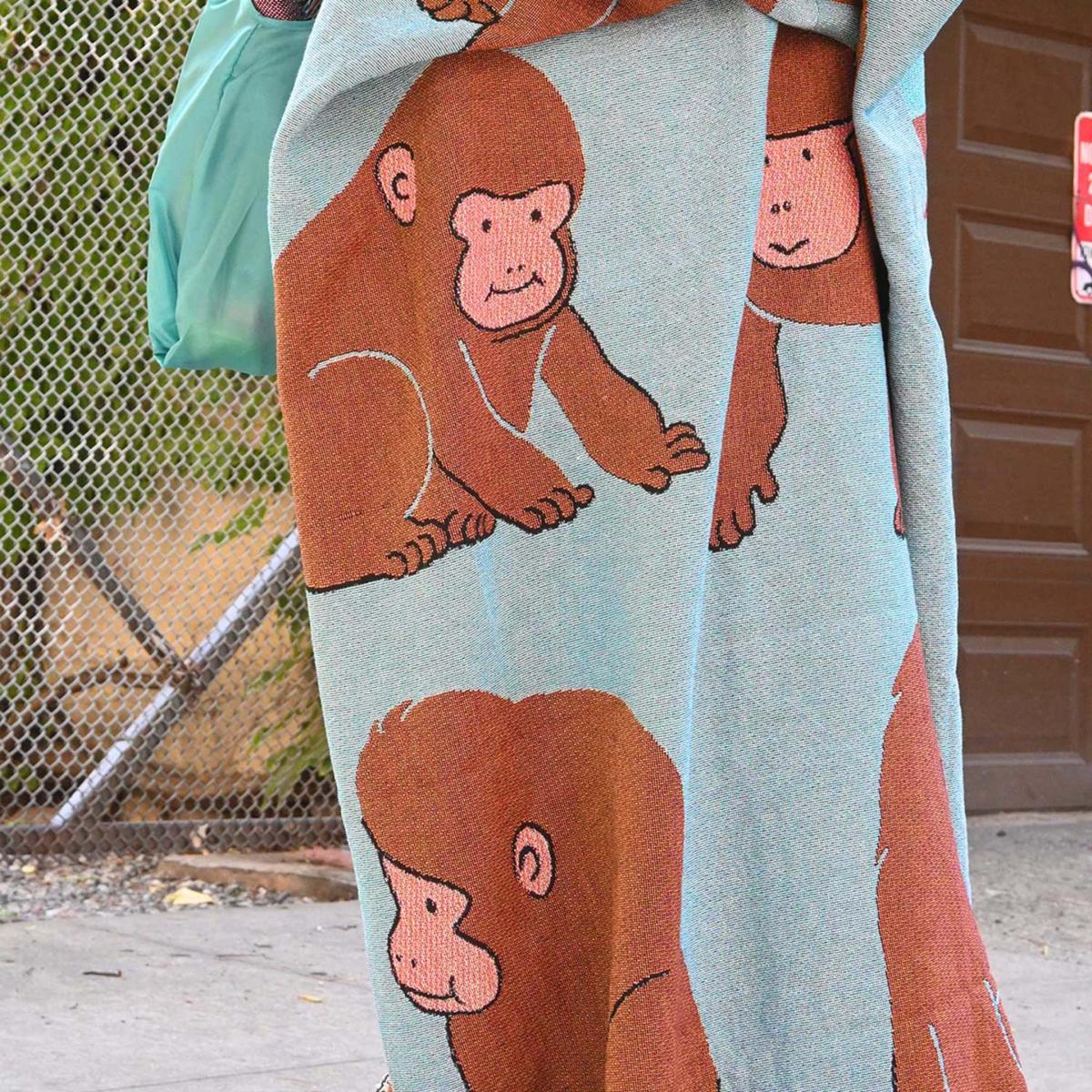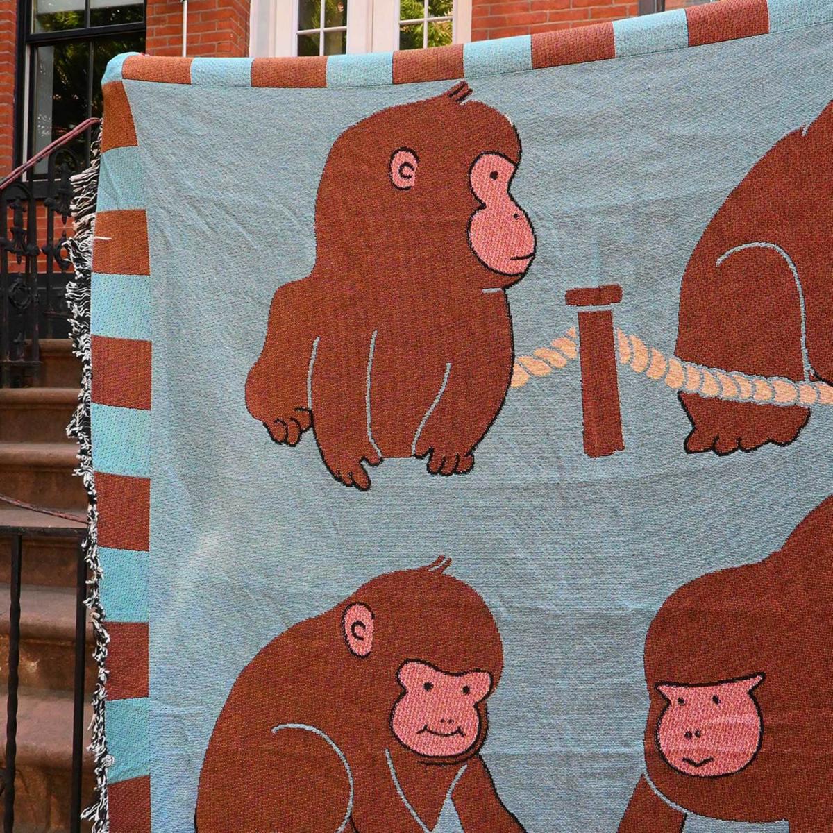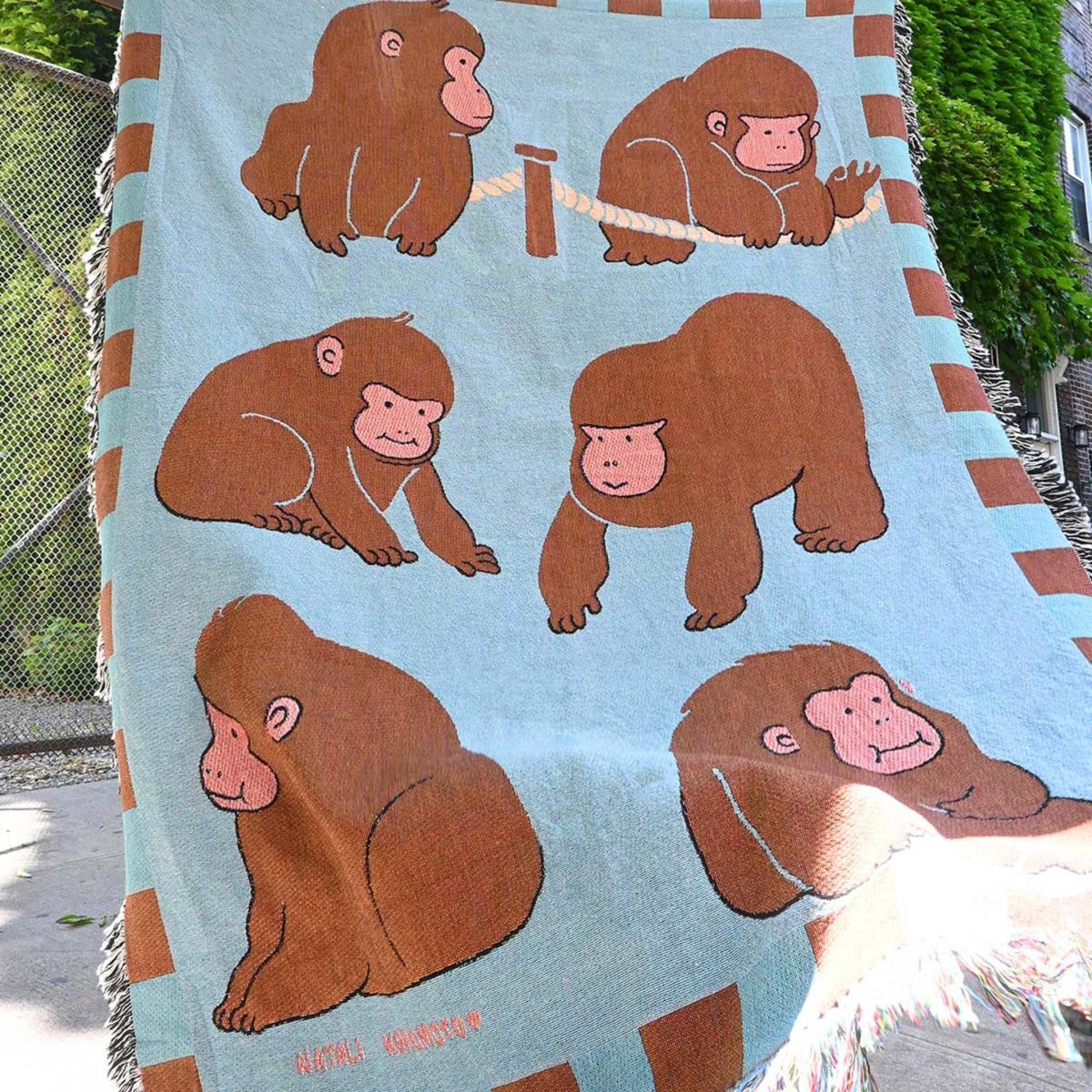 Macaques at play! Macaques at play! 💕🐵🩵✨ Soft Tapestry – This is a huggable, pre-washed soft fabric that is perfect for a multitude of uses. Have a picnic & sunbathe at the park, cozy up on your couch, or hang on your wall! 100% Cotton (Mix of spun cotton and recycled cotton). OEKO-TEX Standard 100 certified Made in the U.S.A.