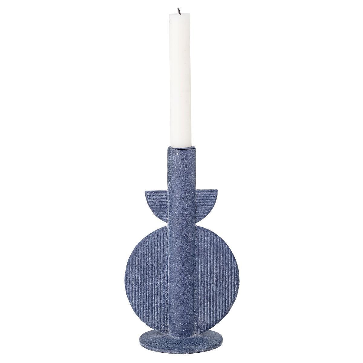 Design. Level up on your accessories with the Blue Candlestick. Finely crafted from stoneware with its distinctive shapes, de. Ta. Iled lines and. Boldly. Finished in blue. This candlestick is. Colorful. And unique.