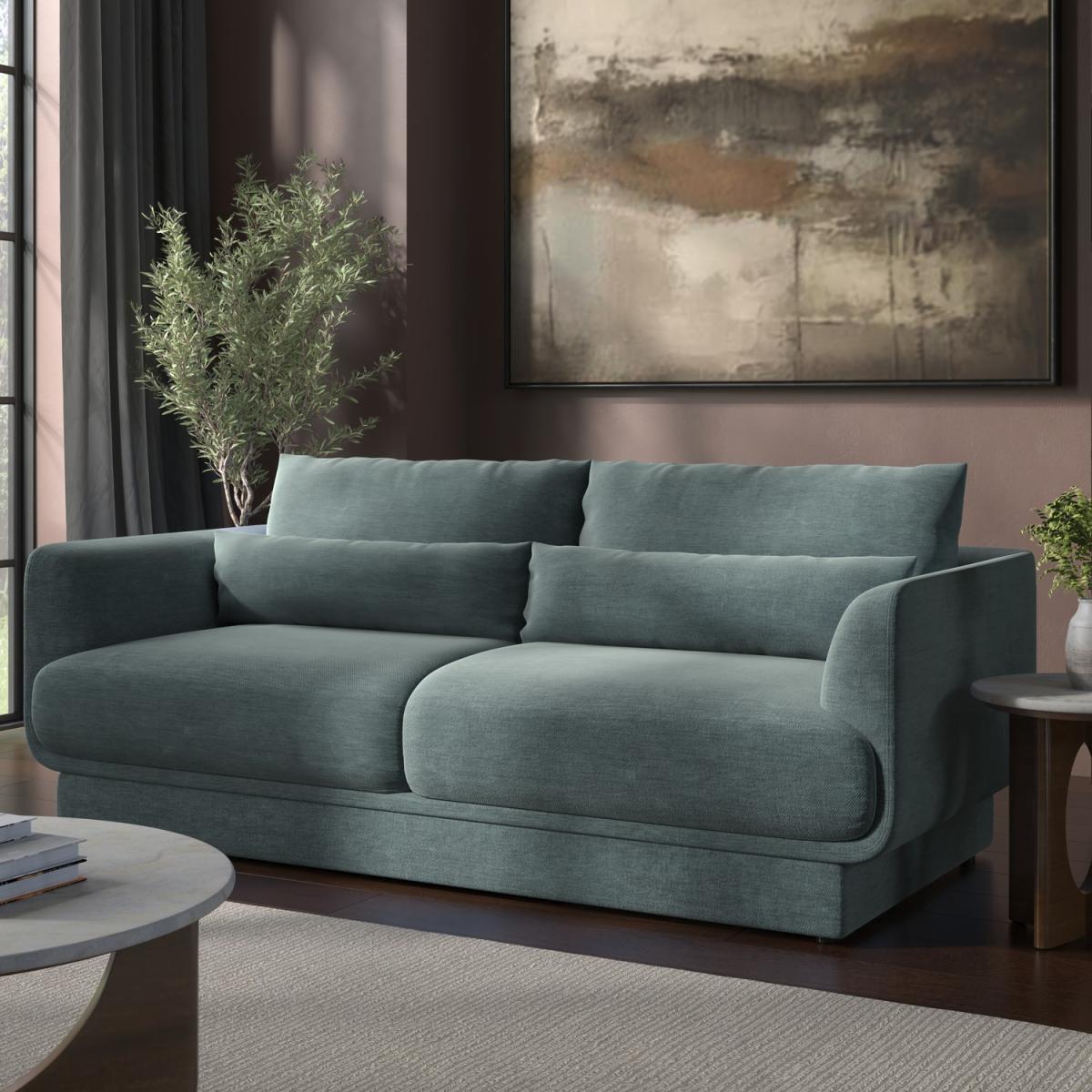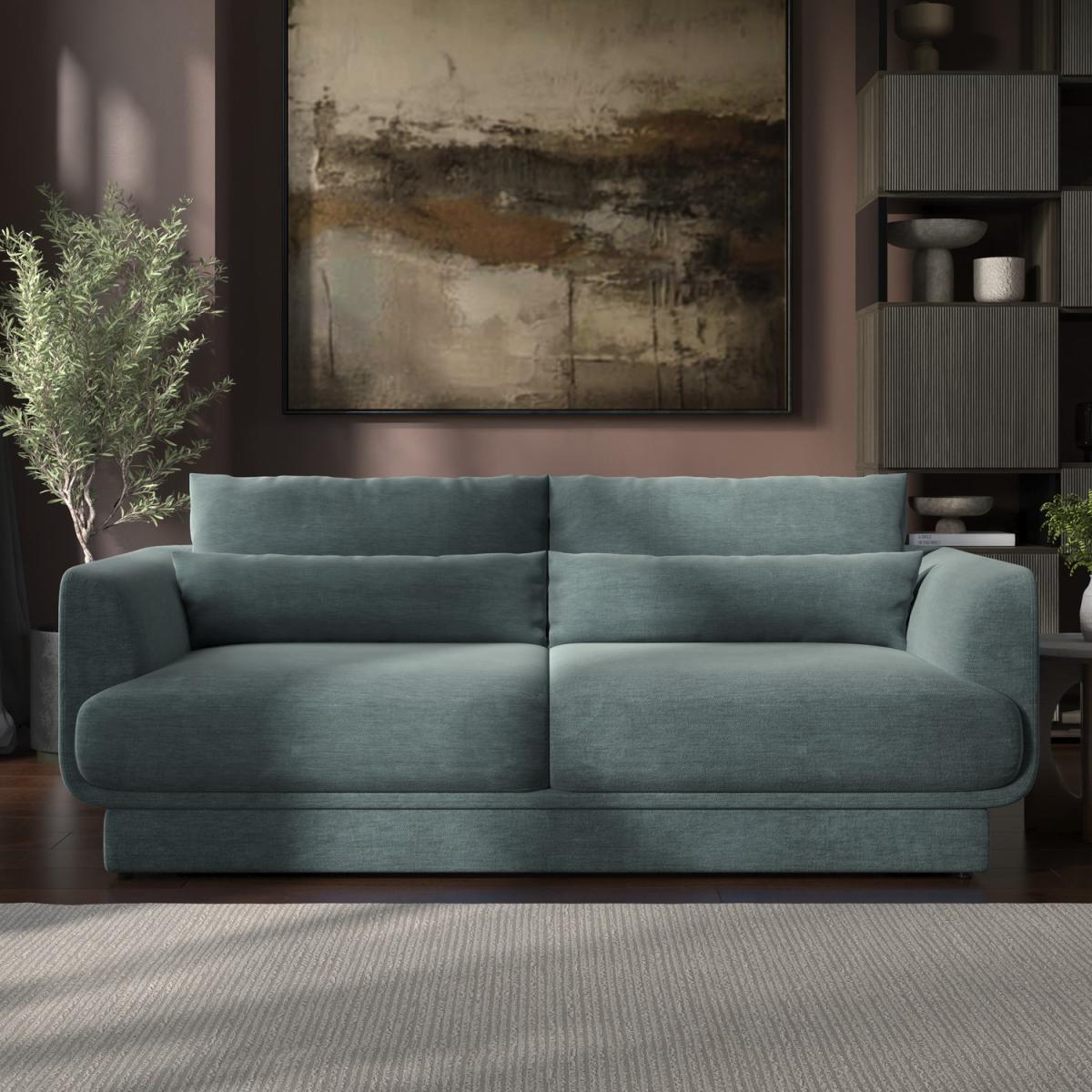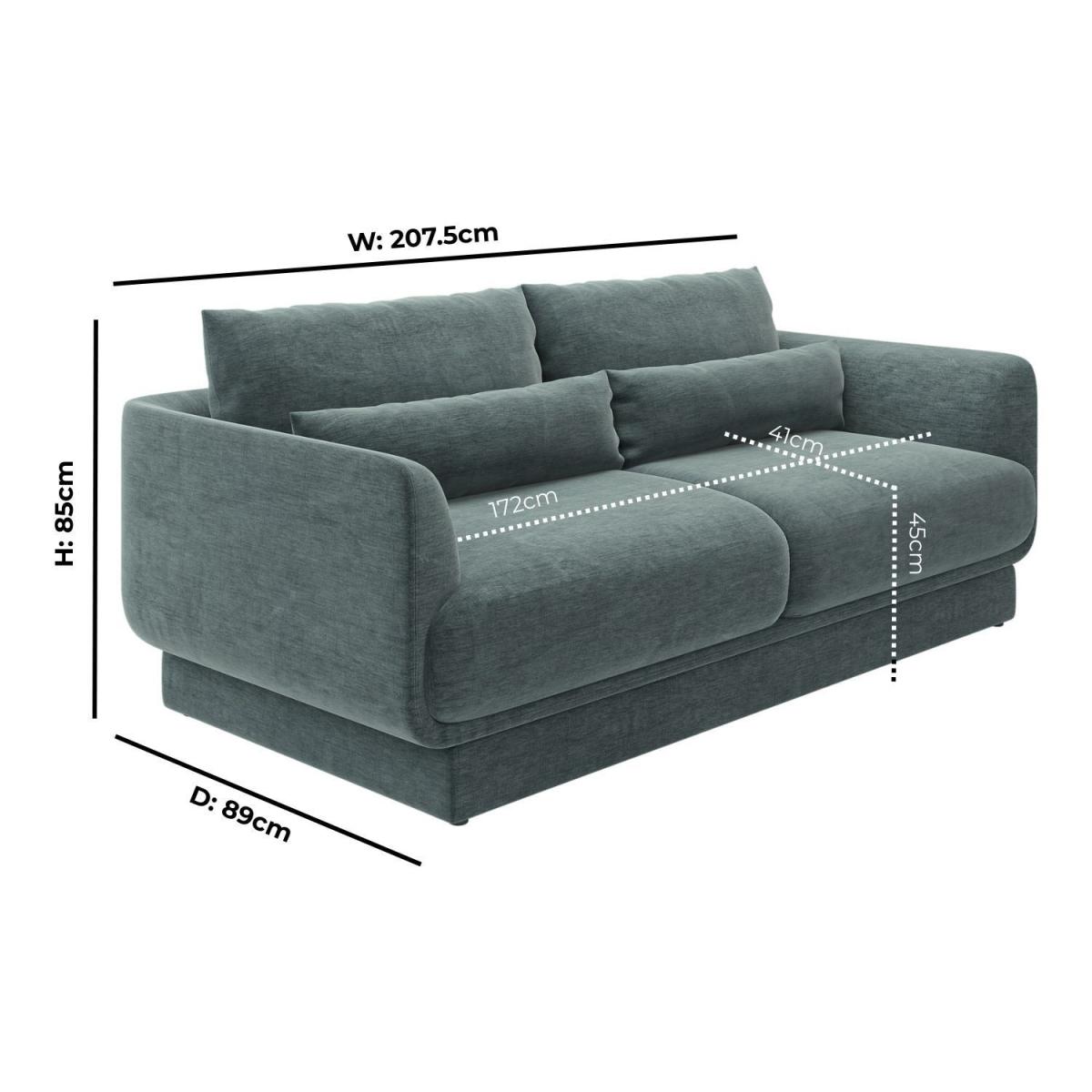 Its sleek, low-profile style and fully upholstered base that sits flush to the floor adds a clean, contemporary finish to your space. Upholstered in soft blue chenille, this sofa delivers comfort and style with a textured look that suits any modern interior. Perfect for family living rooms, cosy lounges, or entertaining guests in style. With removable and reversible back and waist cushions, making it easy to flip, refresh, or clean for lasting comfort and convenience. Includes two large scatter cushions for extra comfort and the finished look. The sturdy construction ensures everyday durability, making it a practical investment for your living space. Elevate your lounge, living room, or snug with the Ramses 3-Seater Sofa — where contemporary style meets everyday comfort. Upholstered in soft and cosy blue chenille, it. Generously sized to seat up to three people, it features plush scatter cushions and gently curved arms for enhanced comfort and support. A sleek, low-profile silhouette and fully upholstered base create a clean, modern look that sits flush to the floor. Plus, it arrives fully assembled so you can enjoy it right away.