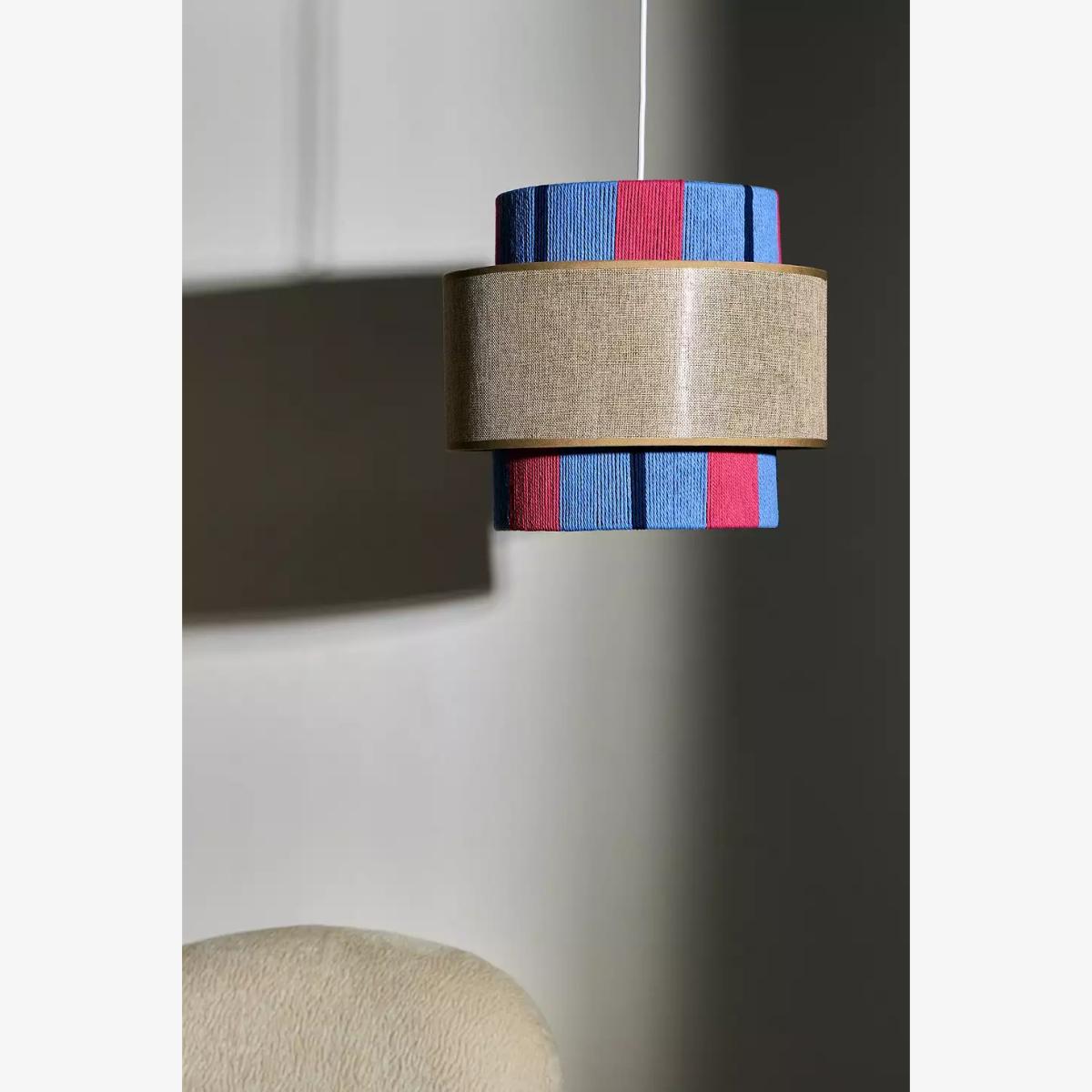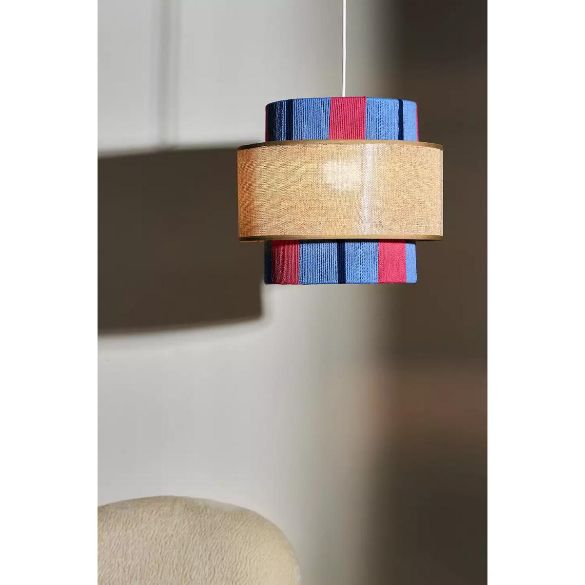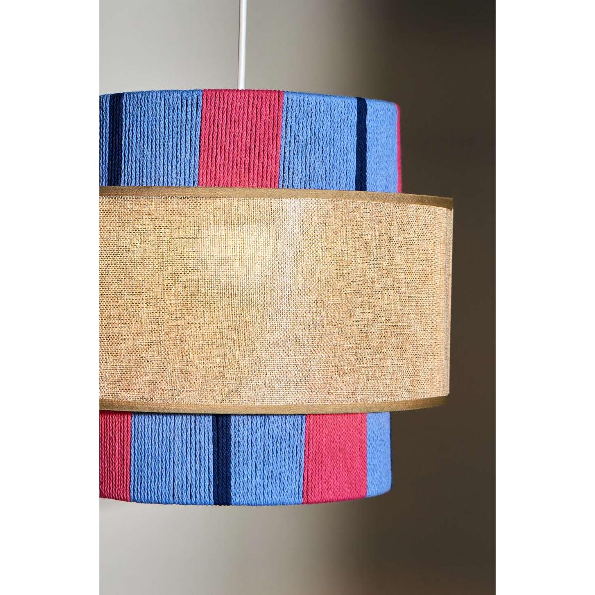 Barrel-shaped lamp shade with two circular silhouette panels. Features a striped and block-colour design with woven rope detailing throughout. Perfect for adding to any light fixture to add a tonal finish to your space. Bulb not included. **Content + Care** \- Cotton, Linen- Spot clean **Size** \- W: 35cm x D: 35cm x H: 31cm- Package dimensions: W: 71.5cm x D: 36.5cm x H: 35cm