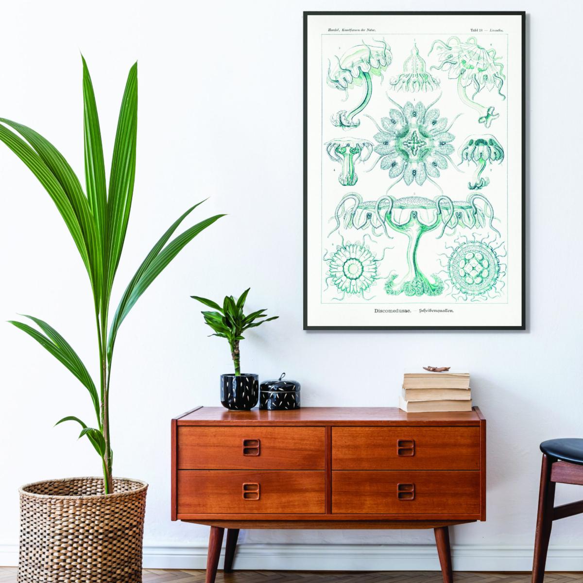 This print of Haeckel's blue jellyfish diagram offers a striking, scientific aesthetic that works well in modern, minimalist, or even eclectic interiors. I love how it adds a touch of organic intrigue and a hint of colour without overwhelming a space. It's particularly effective in interiors with neutral palettes or natural textures, where it can serve as a focal point on a feature wall or above a desk. For practical styling, consider framing it in a sleek, simple frame to keep the focus on the detail, or pair it with other botanical or scientific prints for a curated gallery wall. Its size makes it versatile for both smaller spaces or as part of a larger art display, adding a contemporary yet educational touch to any room.