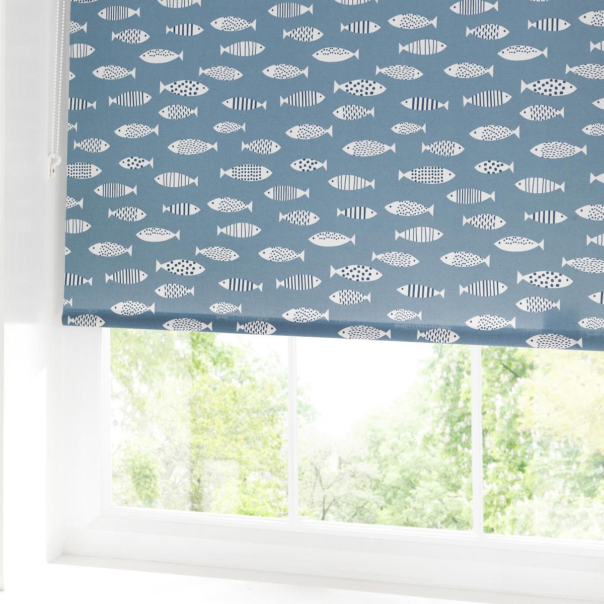 Designed with a blue fish pattern to bring a nautical theme to your home, this roller blind has been fabricated from a durable cotton blend with a moisture resistant and anti-mildew finish making it ideal for your kitchen or bathroom. Designed with an easy to use pull cord, this roller blind is complete with daylight properties to allow maximum light into the room whilst also providing privacy. This blind is available in a range of widths. Please note: The width stated is for the fabric only, please allow an extra 3. 2cm for the brackets and mechanism. Always check specific fitting instructions and check measurements for your blind once purchased before cutting to size. To see instructions, please click. Here.