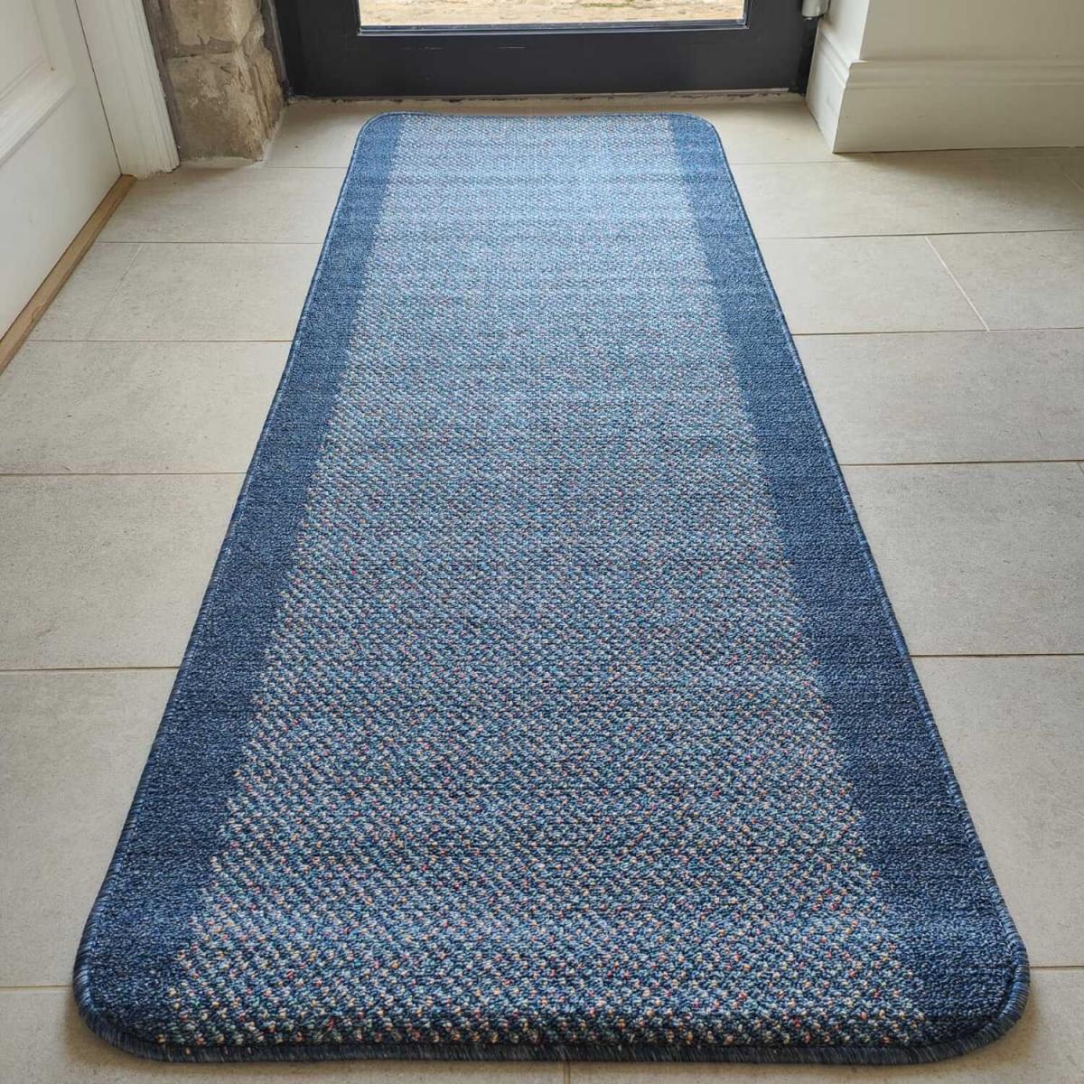Blue Flecked Washable, Non Slip Kitchen and Hall Runners Mats - Candy - Navy / 150cm