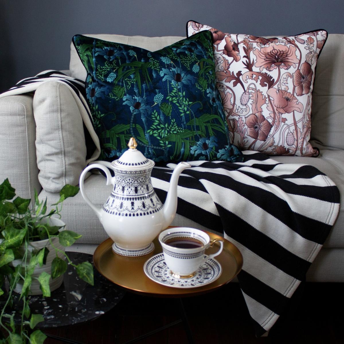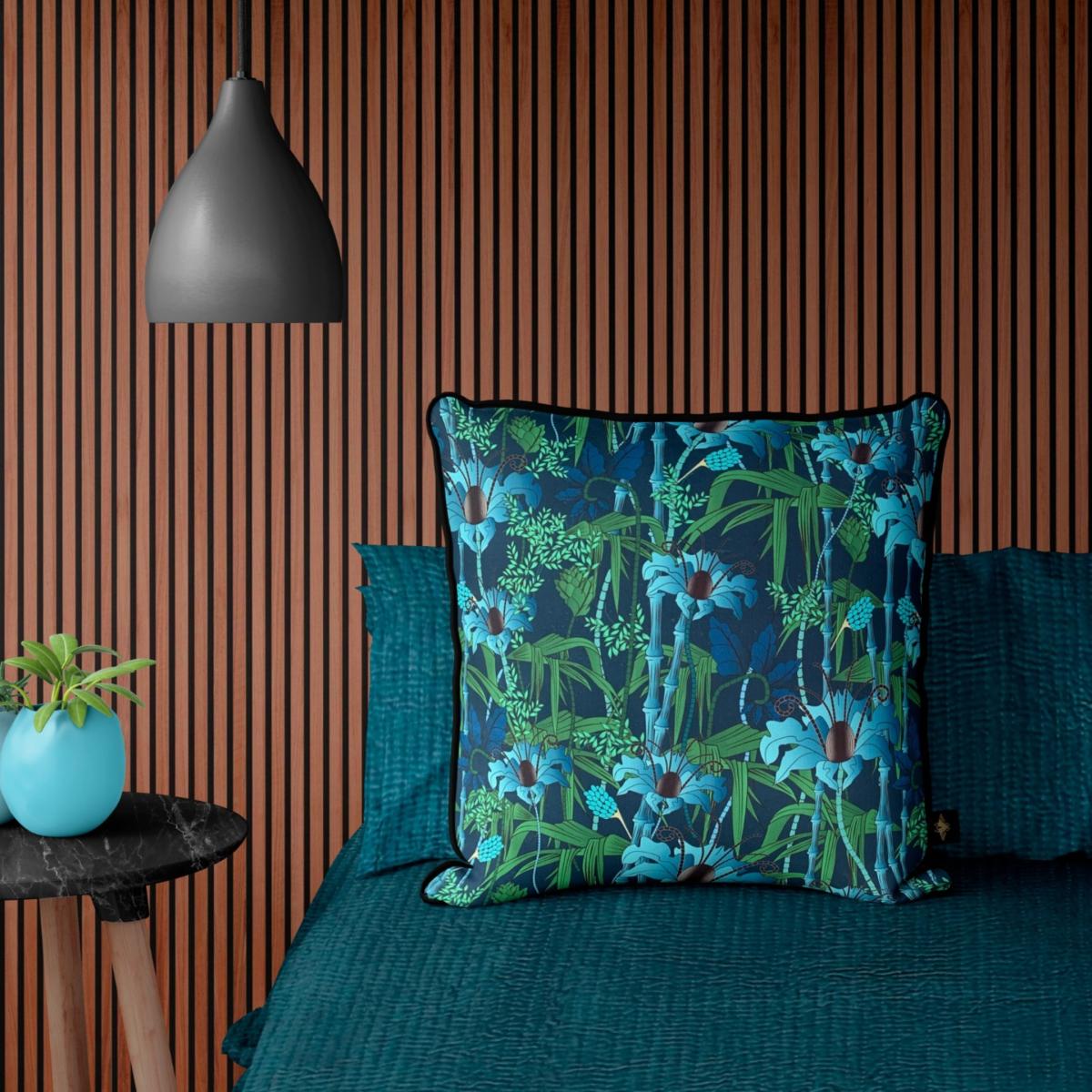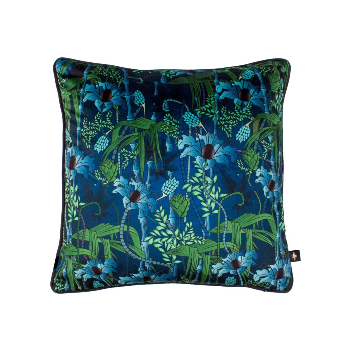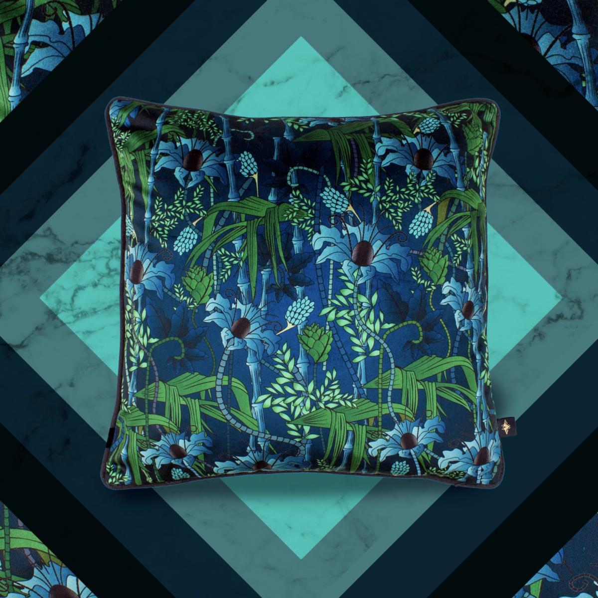 Welcome to the Electric Lagoon! Venture deep into its murky depths to discover the hidden flora that resides within. Our luxurious and shimmering velvet cushions are handmade in the UK, featuring our dazzling pattern on both sides, accentuated with black velvet piping detail, and finished off with a hidden zipper.