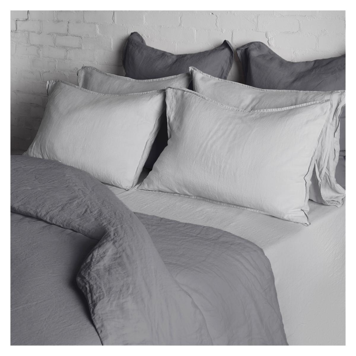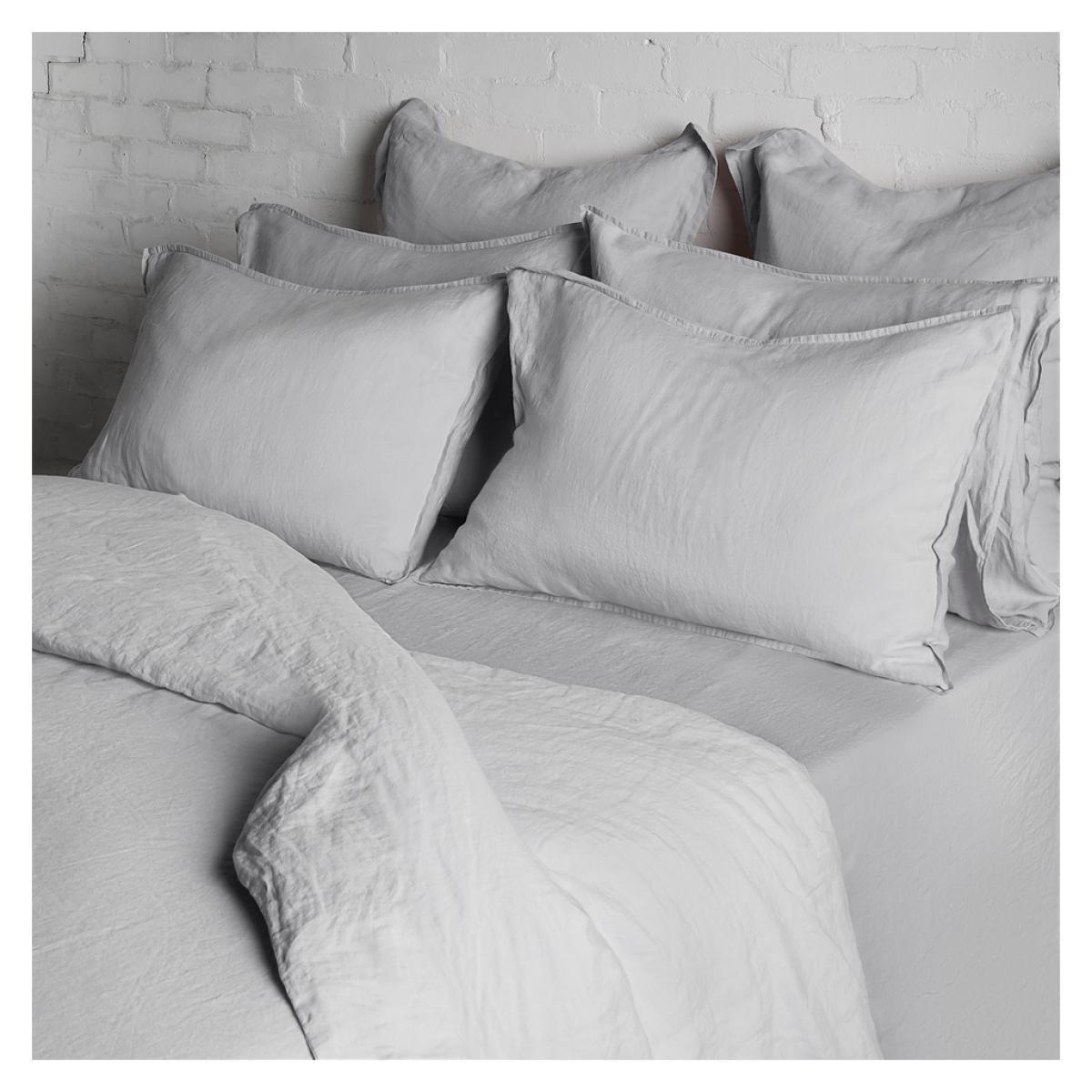 Indulge in a lighter touch with the contemporary blue grey collection, with cool tones and an airy, relaxed feel. Woven from 100% flax-fibre yarn grown in Europe, this pure linen bedding was pre-washed in supremely soft water to award it a beautifully tactile finish and a uniquely relaxed aesthetic. The Conran Shop’s pure linen bedding collection is entirely machine washable at 40°C and suitable for tumble drying.