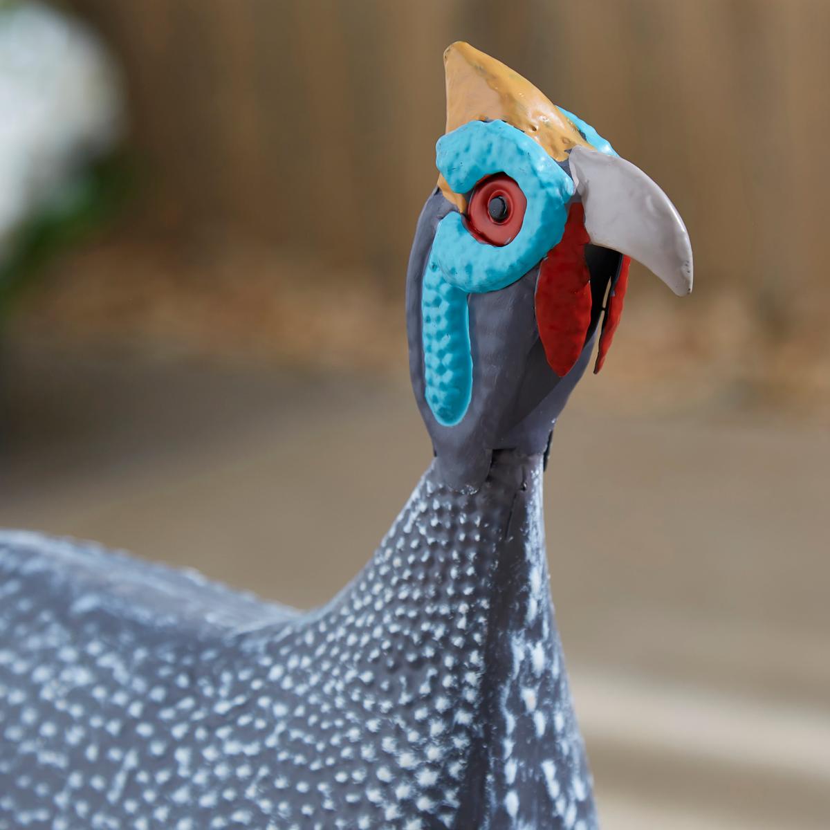 This blue iron guinea fowl sculpture is a fantastic statement piece that adds a touch of playful elegance to any space. I love how its vibrant colour can brighten up a neutral scheme or complement a more eclectic décor. It works particularly well in outdoor settings like patios or garden rooms, where its whimsical nature can be fully appreciated, but it can also serve as a fun focal point on a console table or bookshelf indoors. When styling, try pairing it with natural textures like wood or rattan to enhance its rustic charm, or group it with other colourful accents for a lively, curated look. Practical tip: keep it at eye level or slightly below to make sure it commands attention without overpowering other décor elements.