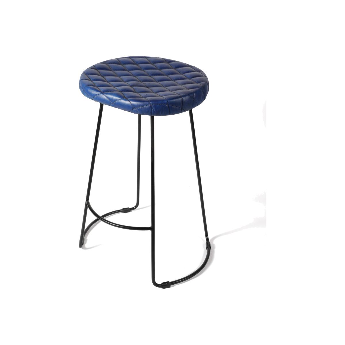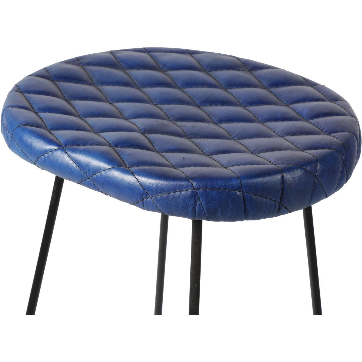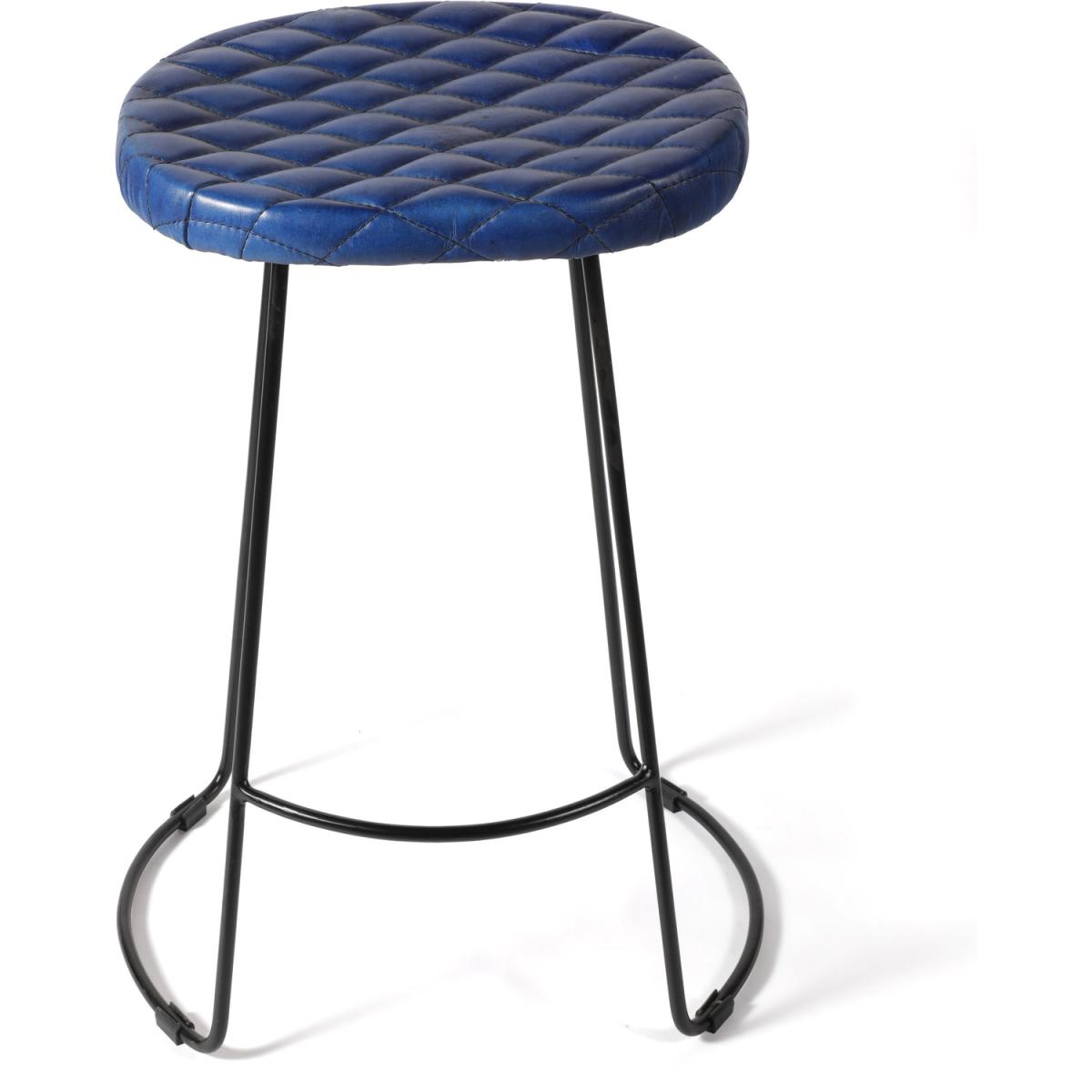 Blue Leather Top Bar Stool with Black Metal Frame - Blue