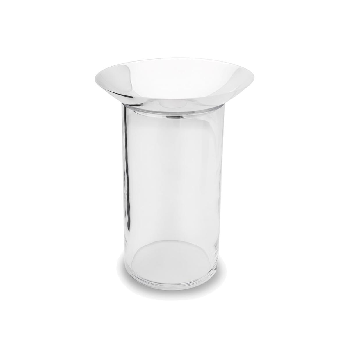 The Luna Flower Vase form the Casa Tane Collection, is made with.925 sterling silver and blown glass. The Luna collection is made with glass artisanally blown in Oaxaca, México. On top, there is a round silver plate with an open centered made for flowers, giving a subtle and gentle effect. The reflection on the silver tray give a glowing effect, representing a full moon's shine on water. Sterling Silver.925 Glass Rinse thoroughly with a special glass solution to remove any soap or vinegar residues. Hand dry with a lint-free cloth to prevent water spots