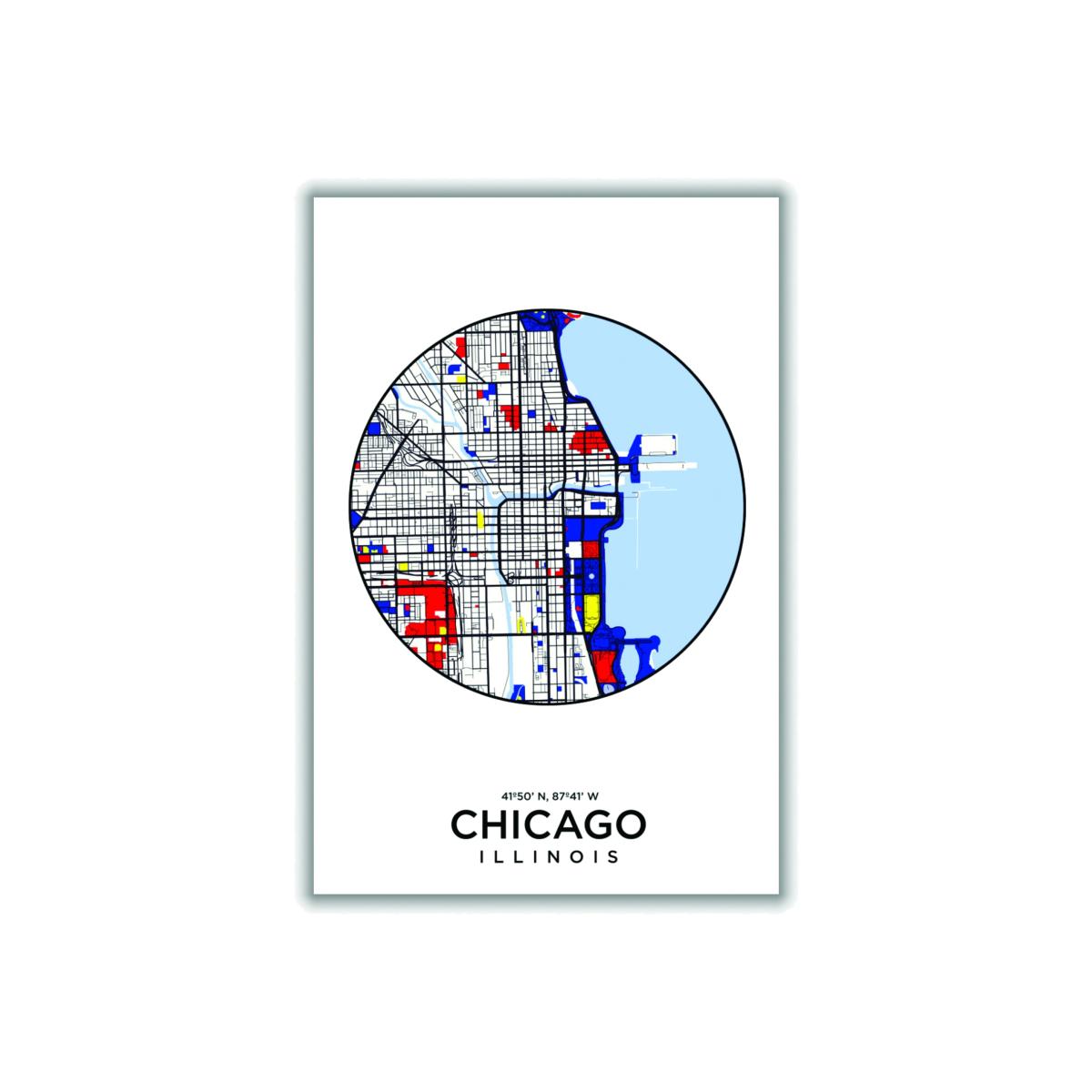 Blue Map Of Chicago Illinois Extra Large Stanley Print House