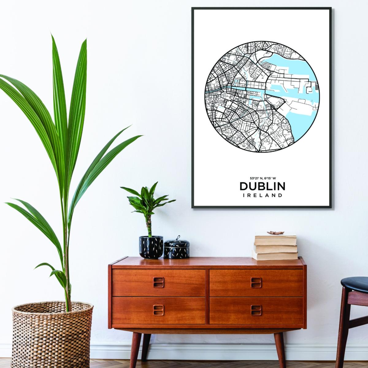 I really like this map of Dublin print-it’s a versatile piece that lends itself well to modern or Scandinavian interiors, especially those with a monochrome or minimal colour palette. Its clean lines and understated design make it a subtle focal point without overwhelming a space. It works well in living rooms, home offices, or hallways, particularly if you want to add a personal touch or evoke a sense of place. For styling, consider pairing it with other cityscape or abstract prints in a gallery layout, or keep it simple with a sleek frame and clear glass for a contemporary look. It’s also an easy way to introduce some colour or interest into neutral schemes when combined with soft furnishings or accessories featuring Dublin’s colours or patterns.