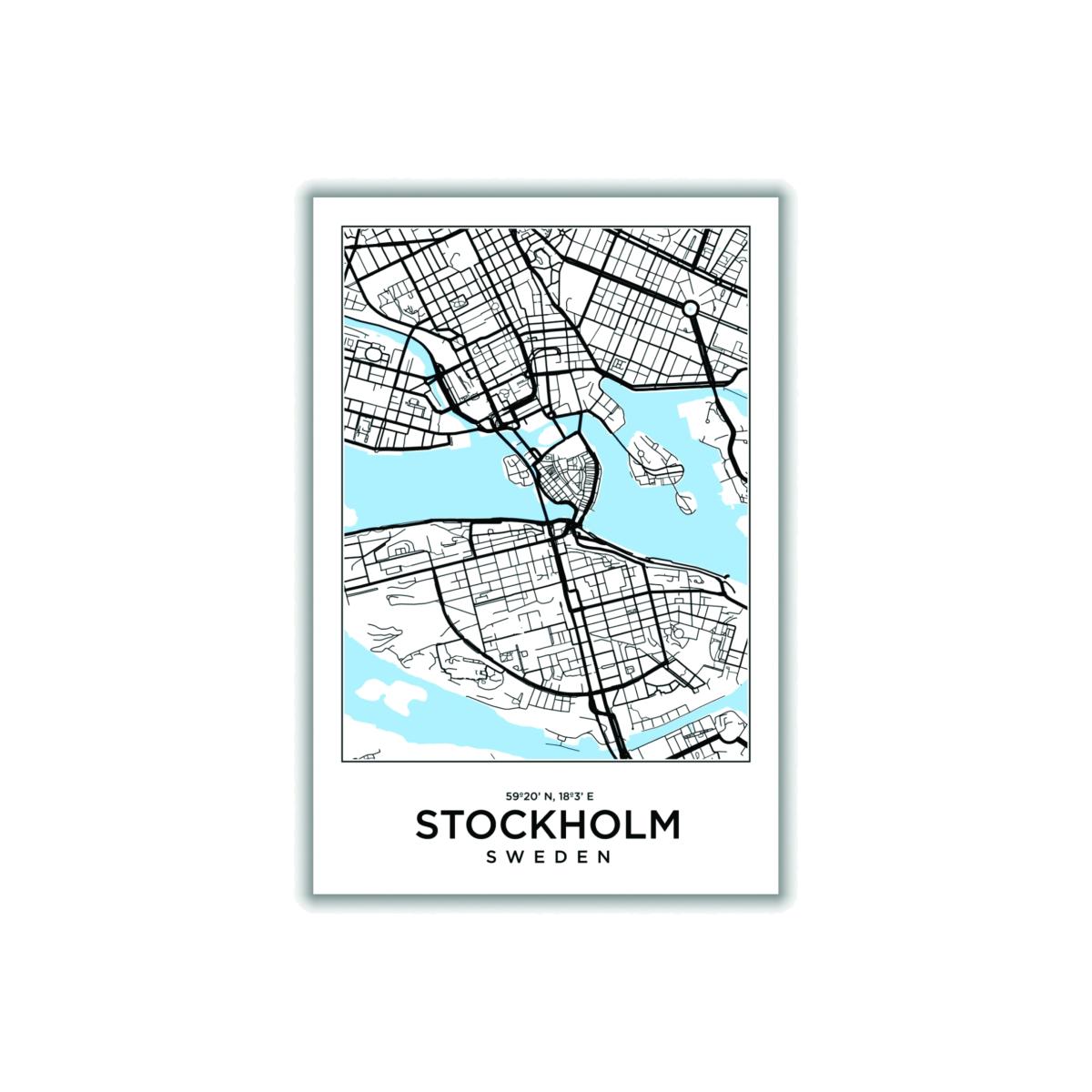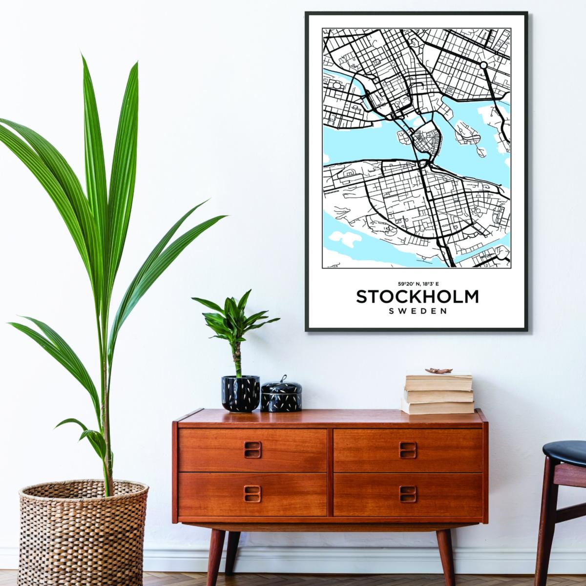 I love the map of Stockholm for its clean, modern appeal and versatility. It works very well in contemporary or minimalist interiors, adding a touch of personal or geographical interest without overpowering the space. The blue and black palette is nave and neutral enough to sit comfortably in both colour-rich or monochrome schemes. For styling, consider framing it in a simple black or white frame and pairing it with other Stockholm-inspired accessories or pieces that have clean lines. It’s perfect for living rooms, home offices, or hallways where a subtle yet meaningful point of interest is desired. Keep the surrounding decor understated to let the map stand out as a sleek piece of functional art.