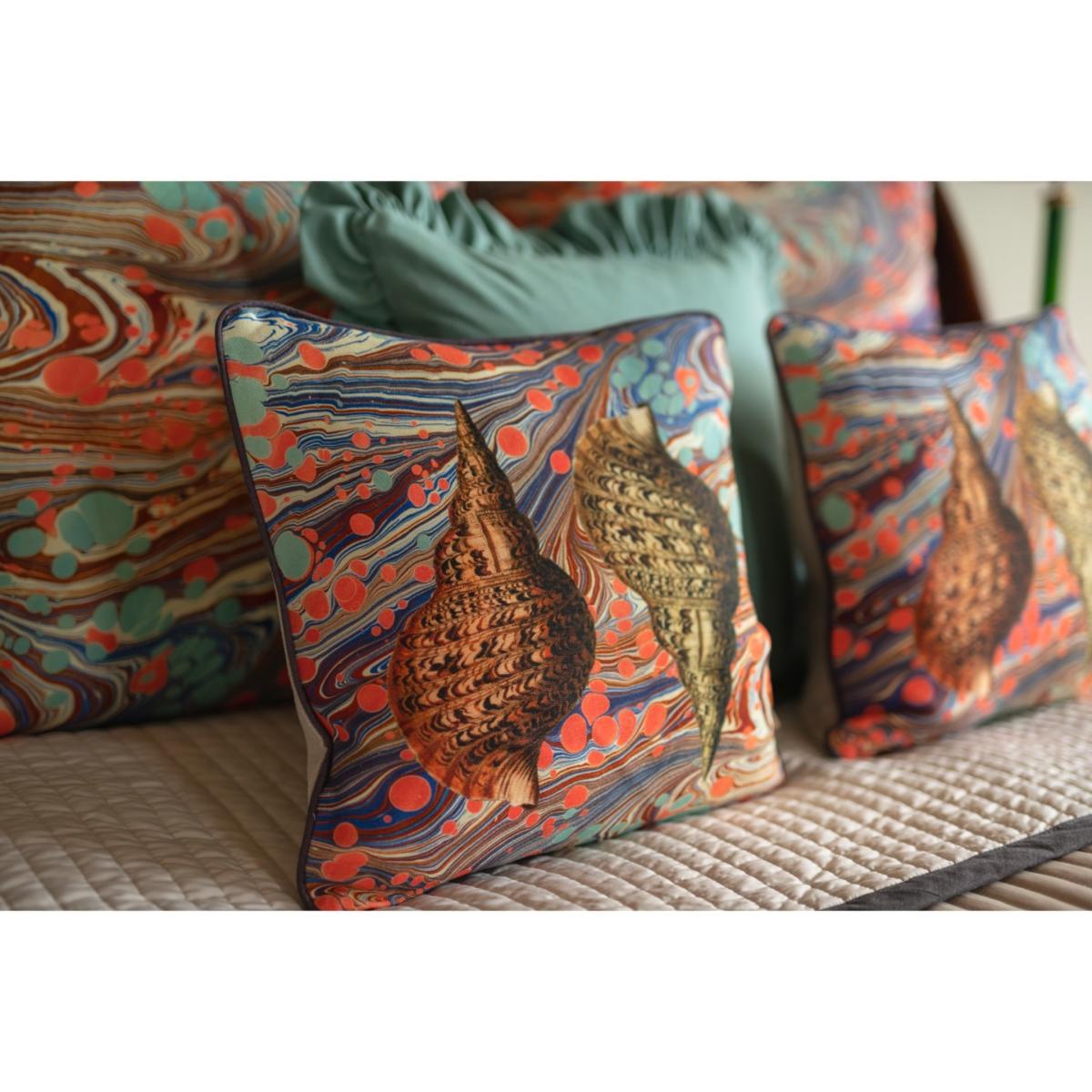 This dramatic and fun design is a fantasy of blues and browns and would look wonderful for a seaside vibe in your living room or guest bedroom? Pair with matching designs for the total look and we think they would look great with rustic wooden furniture or Scandi inspired bedroom spaces. Striving for sustainability and keeping our carbon footprint at a minimum, our cushions are printed in the UK and made by our local artisan makers before being packed up in recycled and recyclable packaging. The inserted cushion pads are made in Norfolk and their duck feathers are ethically and sustainably sourced.