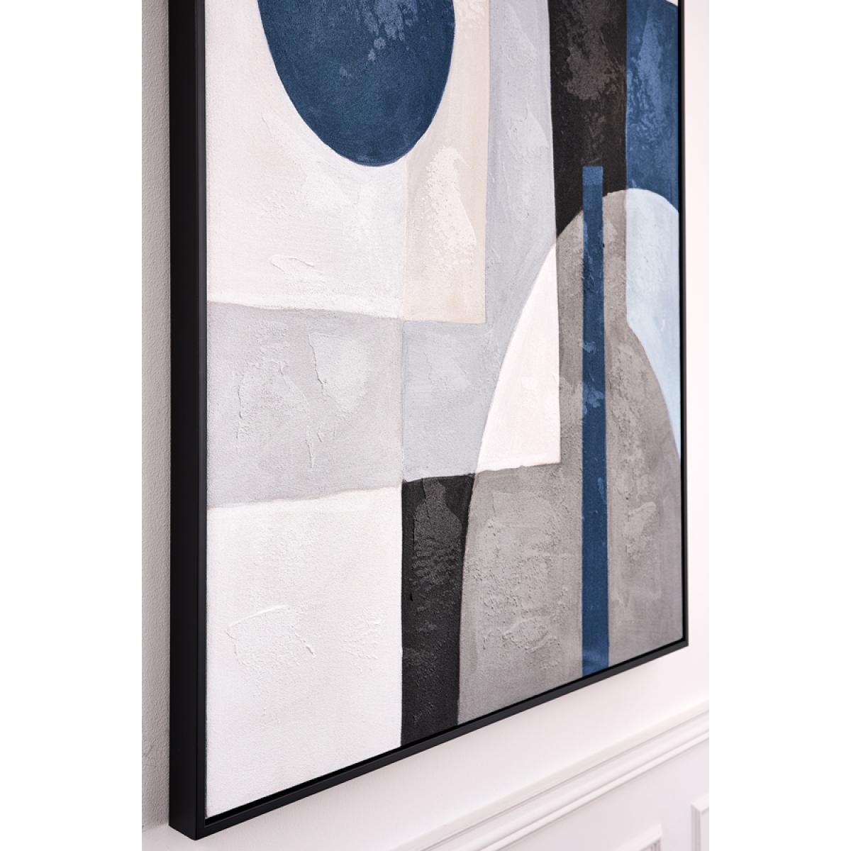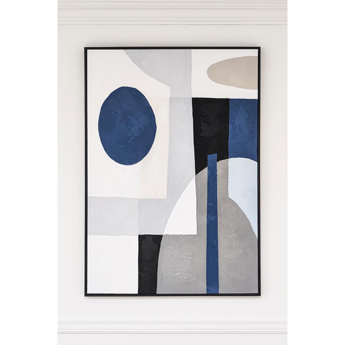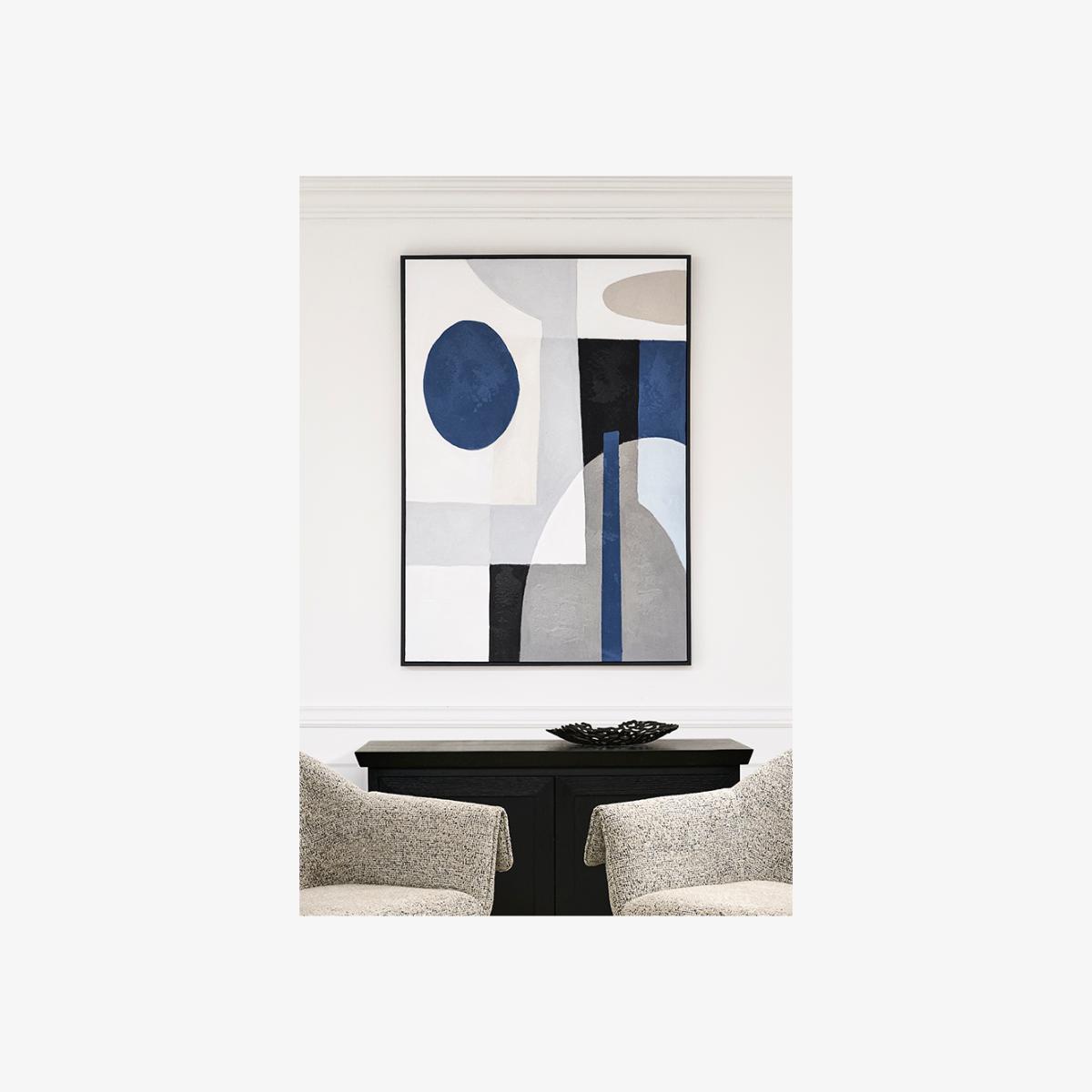 A high-quality, hand-painted artwork on stretched canvas - exclusive to My Furniture. Inspired by the bold abstract forms of 1960s modern art. Featuring geometric and freeform shapes and layered tones of grey, cream and deep teal, it will add a sophisticated focal point to any room. Finished in a deep, black-stained wooden frame. Supplied with fixings for both portrait or landscape hanging.