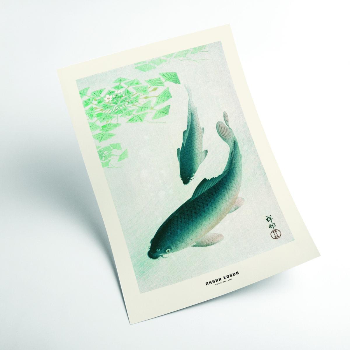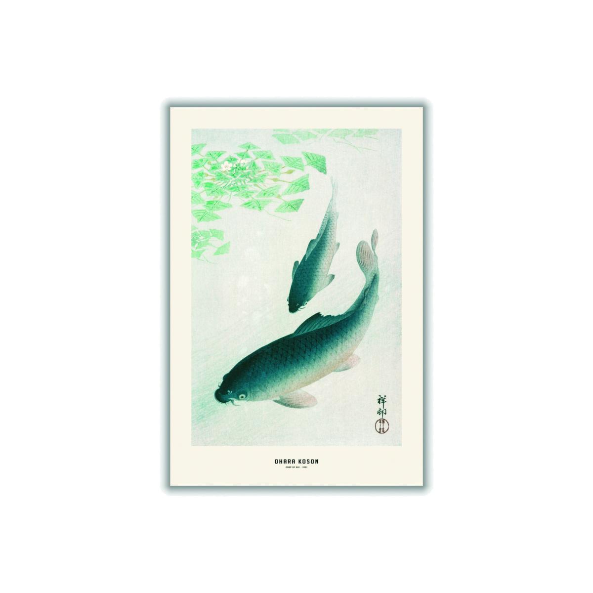 Blue Ohara Koson - Carp Or Koi A4 210 X 297Mm Stanley Print House