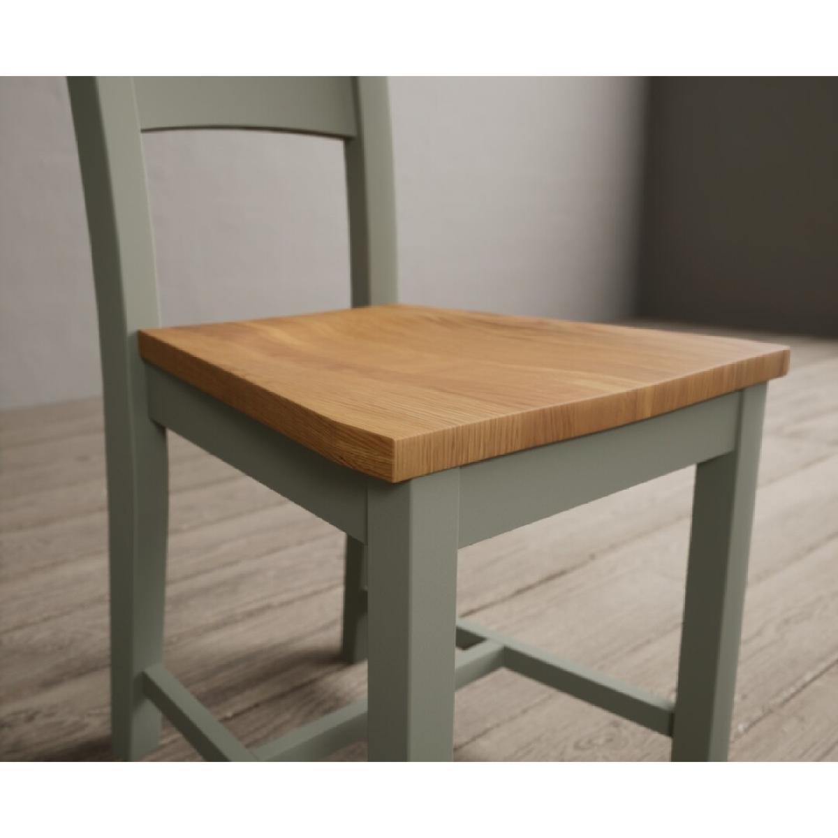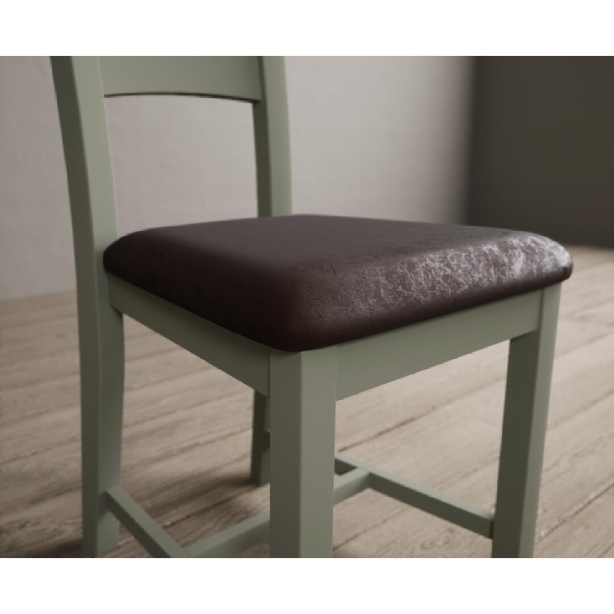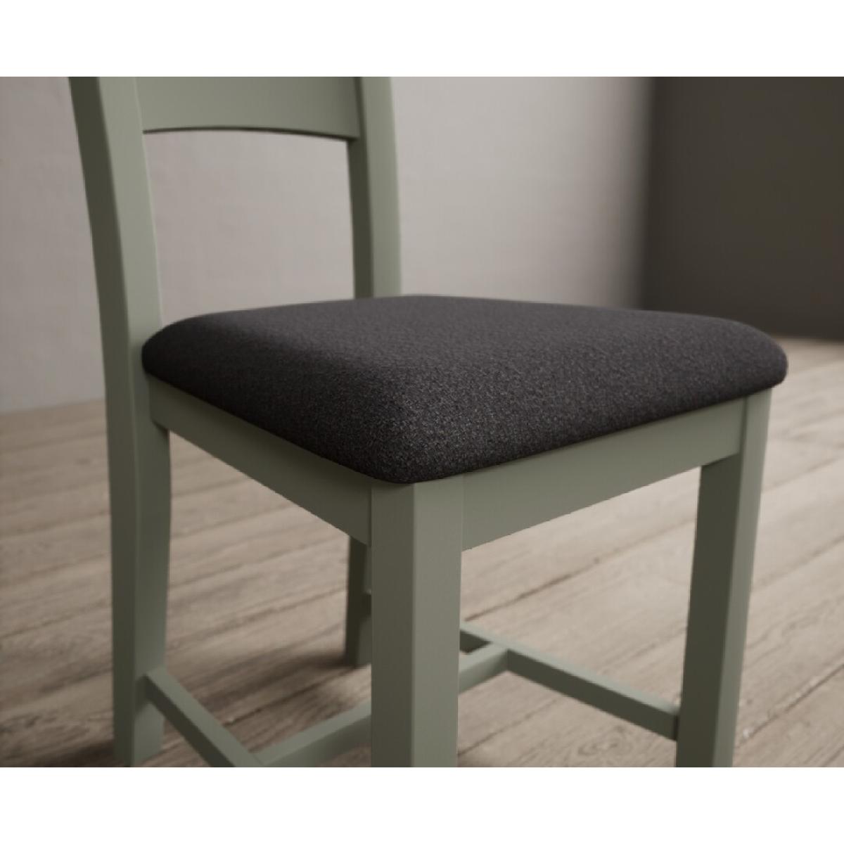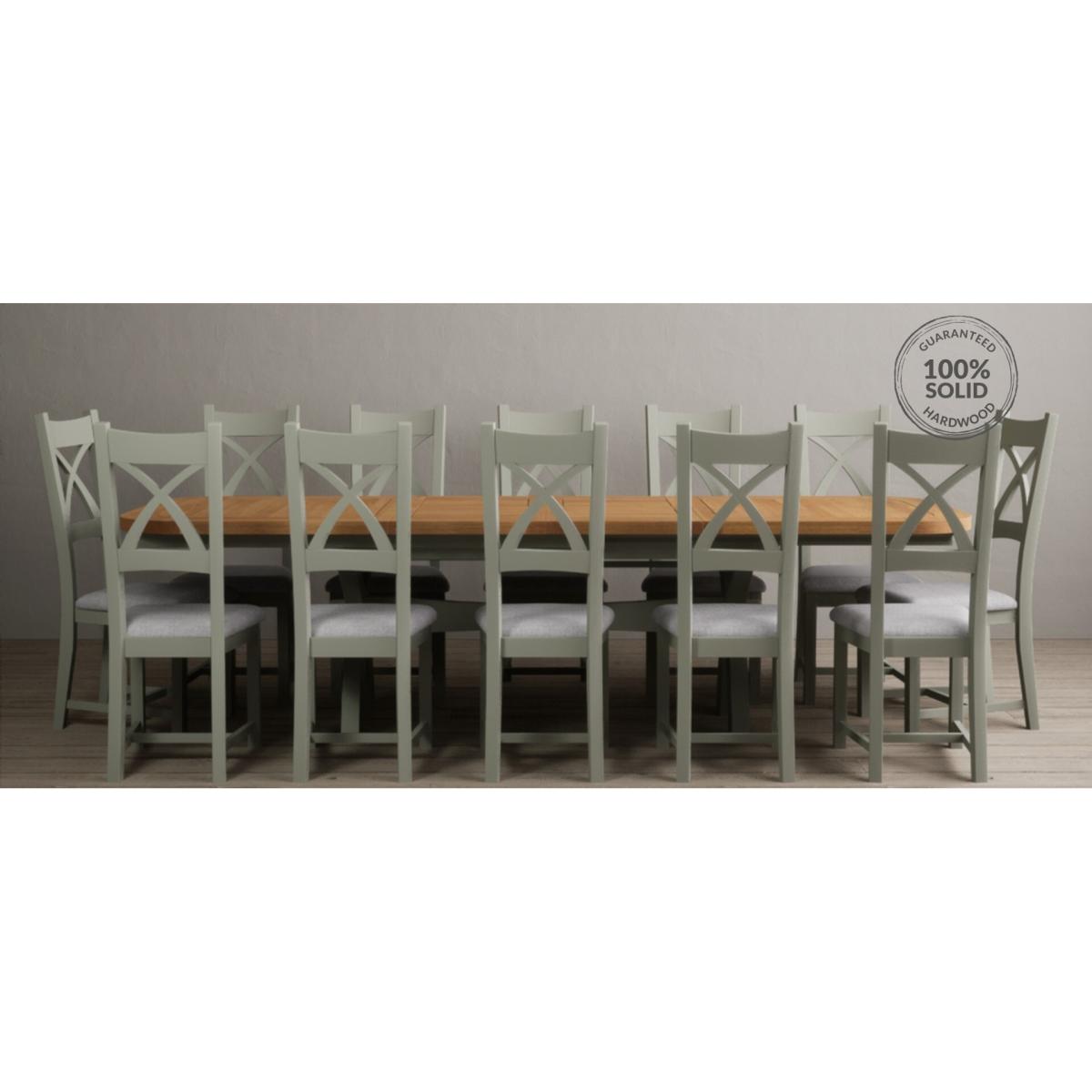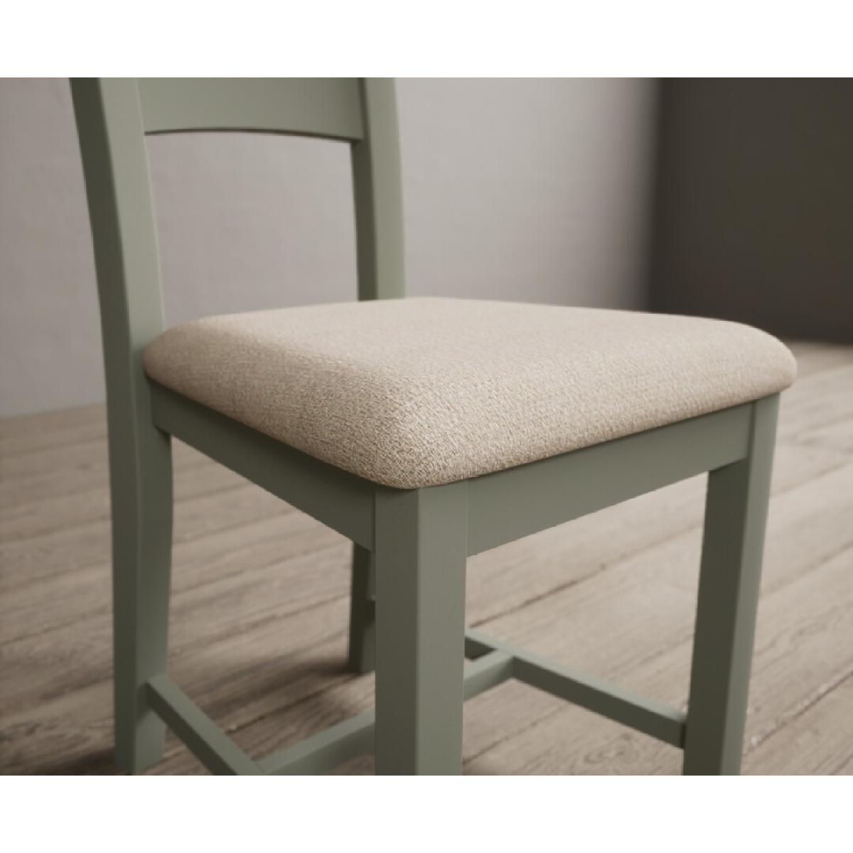 The Painted Soft Green X Back Dining Chairs with Light Grey Fabric Seat Pad feature a soft green painted solid hardwood frame and comfortable light grey fabric seat.