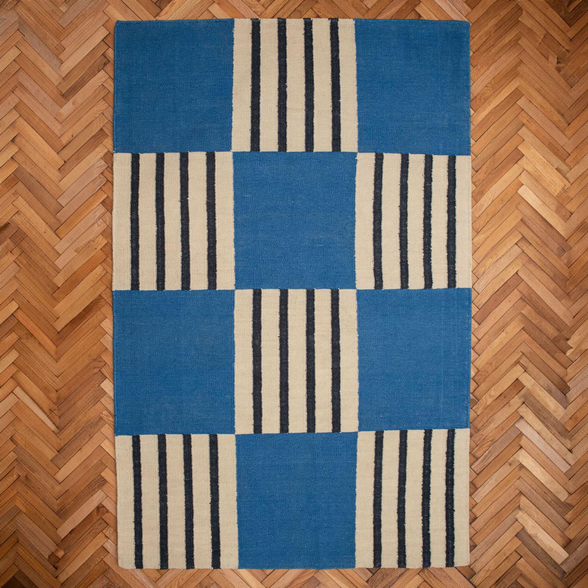 I love the blue paradox rug for its clean, contemporary look and the way it combines bold stripes with blocks of solid colour. Its hand-woven cotton texture adds a natural, tactile element that works really well in modern or minimal interiors, but it can also inject a touch of colour into more neutral schemes. It's versatile enough for use in living rooms, bedrooms, or even a cosy home office. For styling tips, pair it with simple, understated furniture to let the pattern stand out, or layer it with textured cushions and throws to add depth. Because it’s lightweight and manageable in size, it’s easy to move around and position to suit your space. Overall, it’s a practical yet striking piece that can effortlessly elevate a room’s aesthetic.