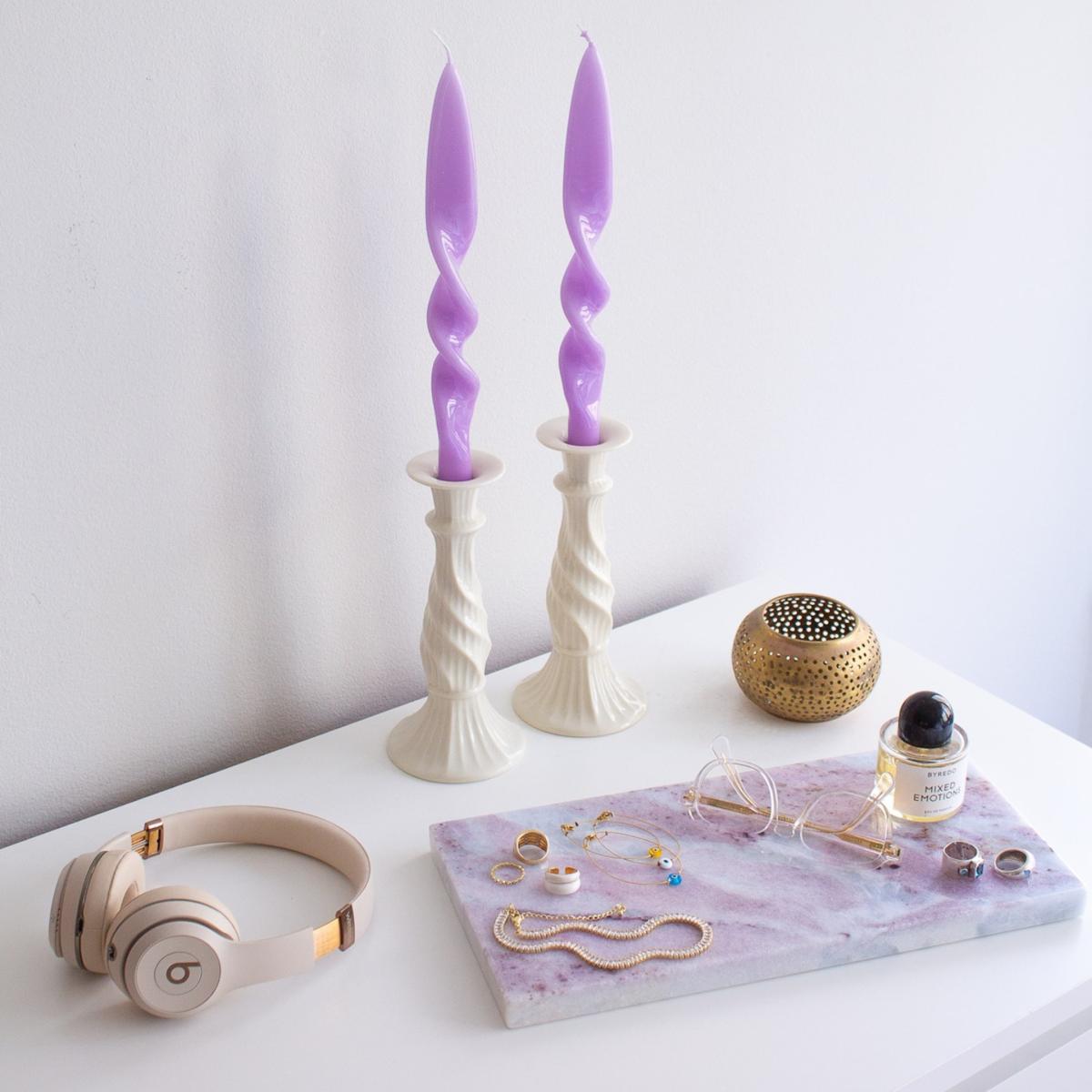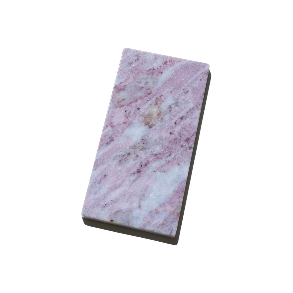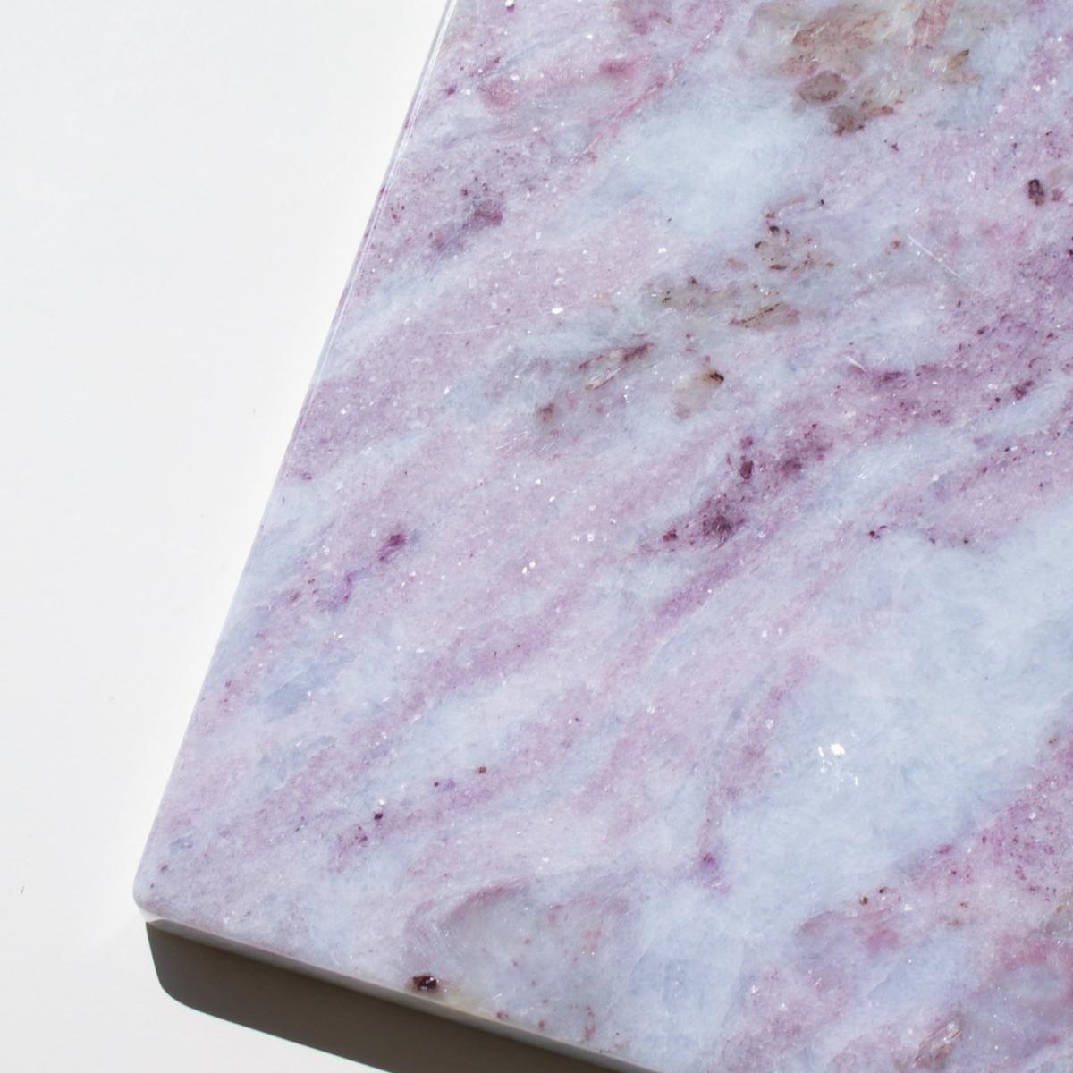 A special marble that has been changing color since it left its home in Namibia. As purple introduces itself into the traditional milky blue + white this stone seems to be following its right to sunset. Made from African marble.