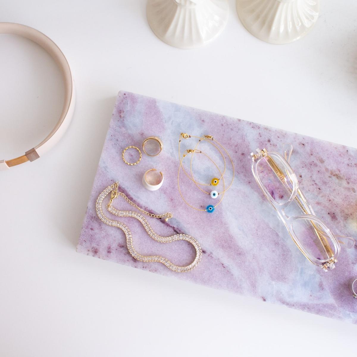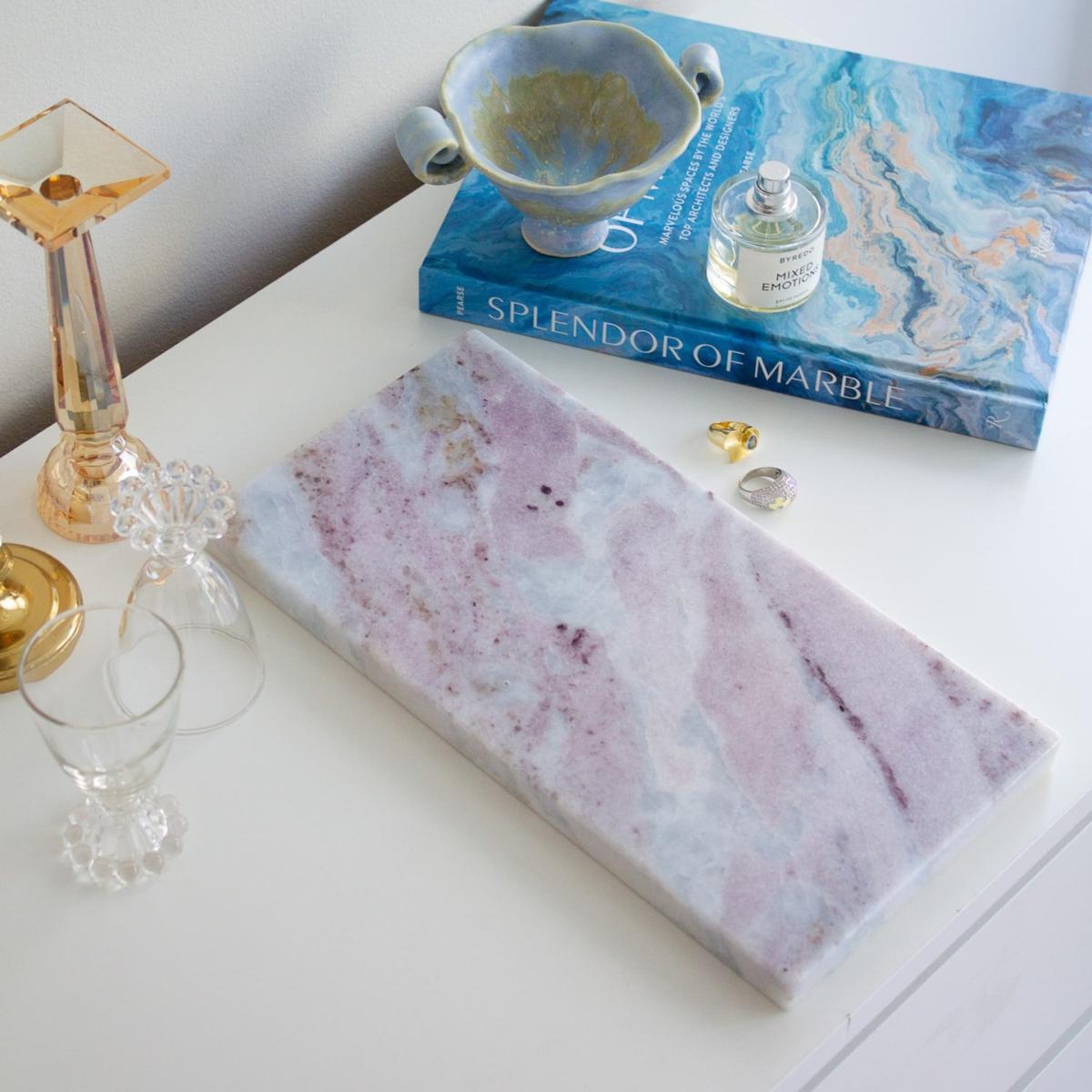 I love this galaxy marble tray for its vibrant colour palette and tactile appeal; it serves as a functional decor piece that adds a pop of colour and a touch of luxury. It works particularly well in contemporary or eclectic interiors, where bold statement accents are appreciated. Practical styling tips include using it to organise jewellery or small accessories on your dressing table, or as a decorative base for displaying perfumes or candles. Its striking marbled pattern can create interesting focal points when paired with minimalist surroundings, and it effortlessly adds a touch of personality to any vanity or shelf space.