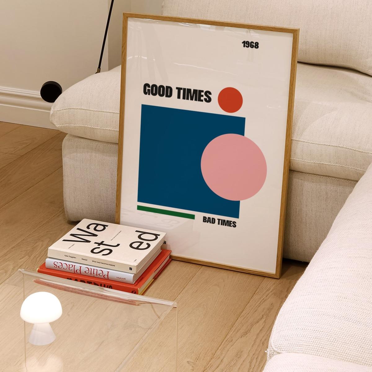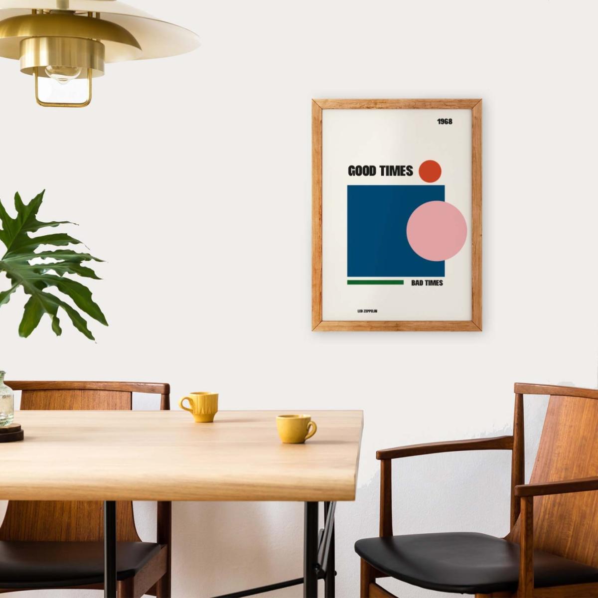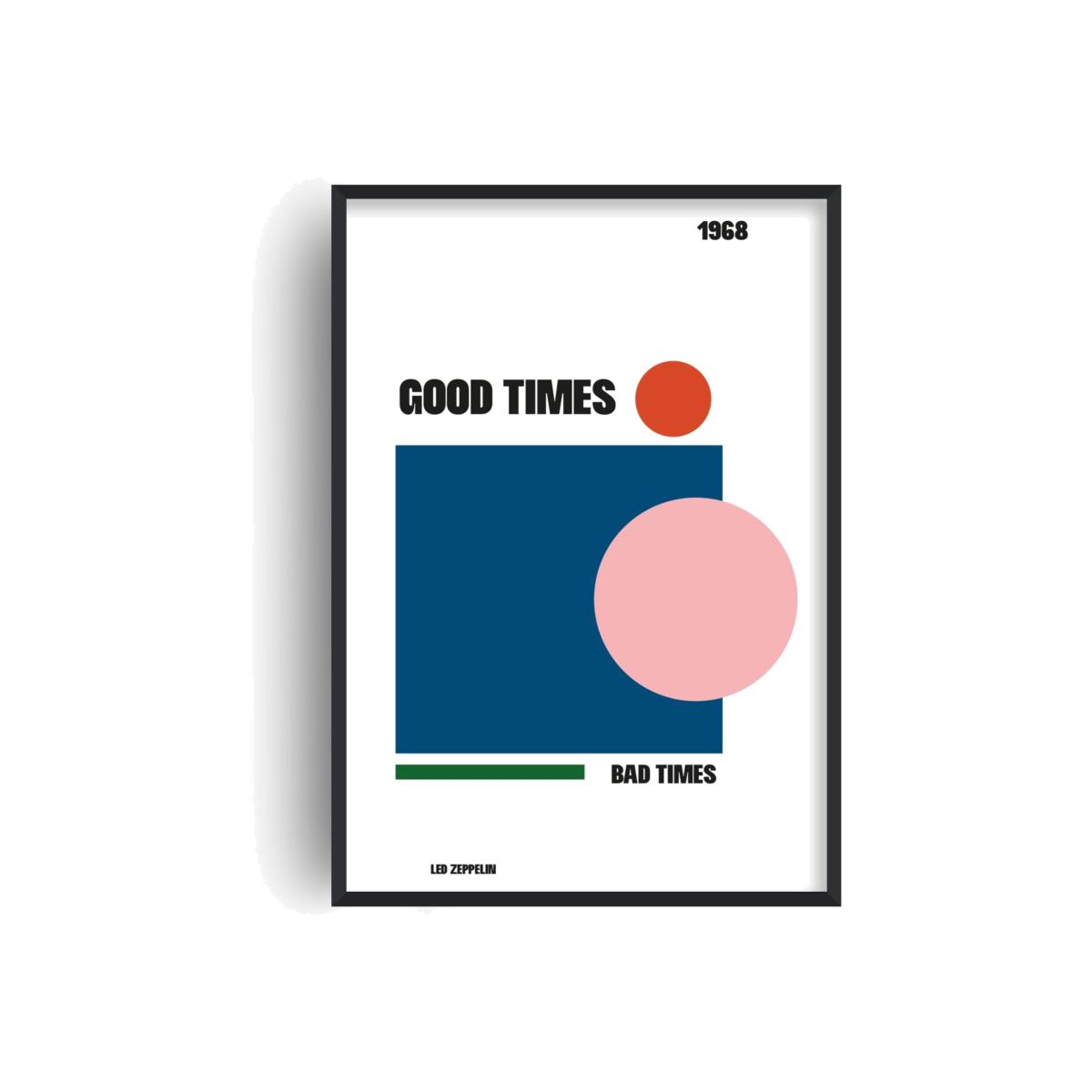 Good times, bad times - a phrase we can all relate to. In life there are ups and downs, highs and lows, we get through the bad and celebrate the good. Inspired by the 68 song by rock n roll legends Led Zeppelin, our good times bad times print uses bold playful colours and Bauhaus-inspired shapes to bring some colour into your homes. The perfect graphic piece to elevate your space Sold without frame Giclée printed on Munken pure smooth cream paper which is certified by the Rainforest Alliance Program for FSC® Standards.
