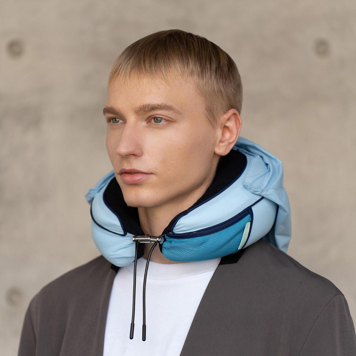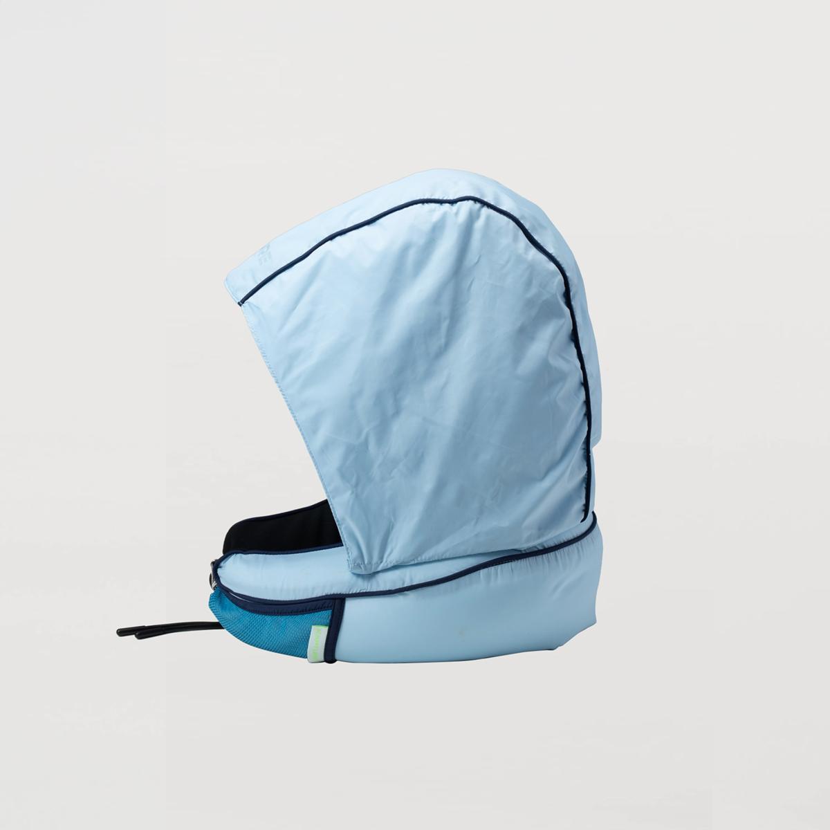 This travel pillow brings you a cozy sanctuary feel, this pillow harmonizes style with functionality, guaranteeing personalized comfort wherever your travels take you. Our ultra-light (330g) travel pillow is customizable, washable, and crafted from recycled nylon. Experience the cooling fabric, detachable hood, and convenient storage pocket—ideal for your adventures! Explore the rich array of colors offered by the Kapture Travel Pillow, designed to suit every preference and ensure you travel in both comfort and style. Select your preferred design and enhance your journey in luxurious comfort!