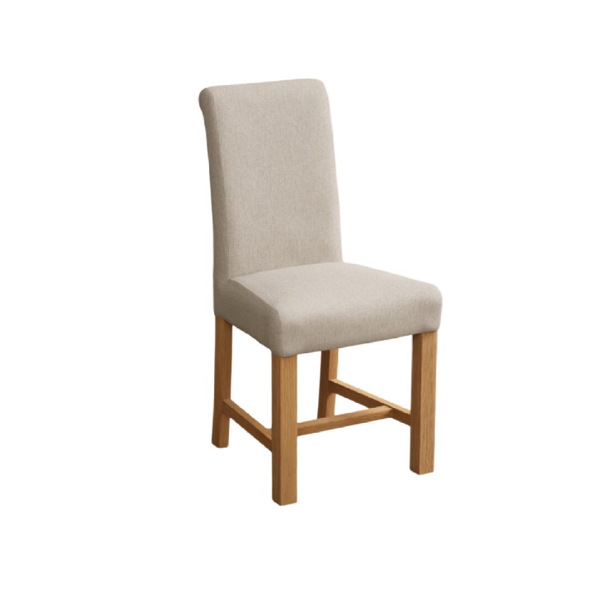 Braced Leg Fabric Dining Chairs are beautifully crafted and comfortable chairs with classic scroll back designs.