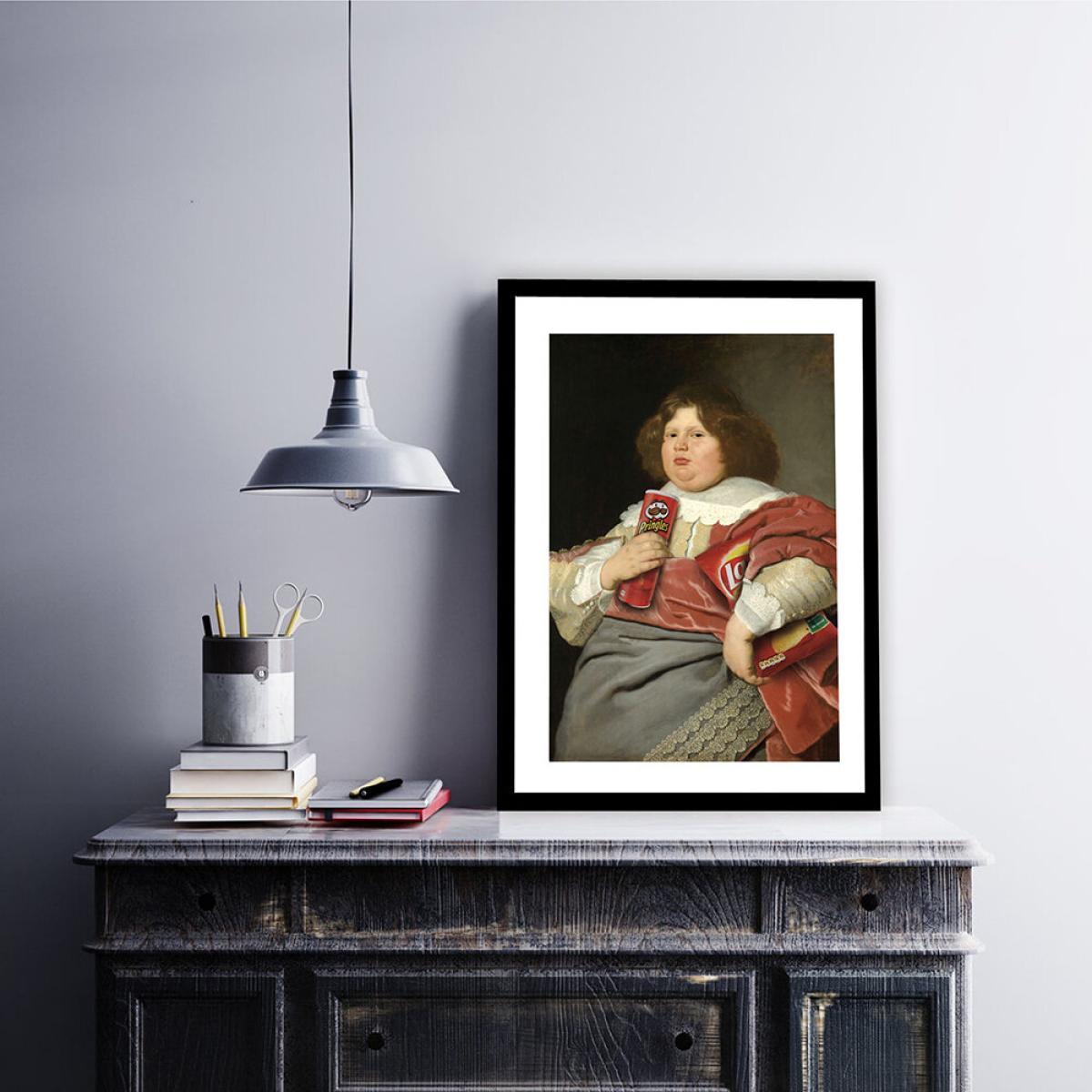 Make sure your interior is as unique as you are with this Chips print from Blue Shaker. Featuring a classical-style portrait, it’s been brought into the twenty-first century with the subject holding his favourite potato chip snacks.