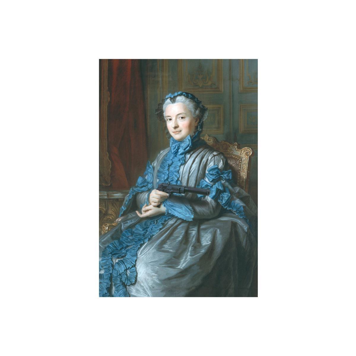 Bring your walls to life with this Gun print from Blue Shaker. Featuring a classical-style portrait, it’s been brought into the twenty-first century with the subject posing with a gun and pointing it at a mysterious out-of-frame target.