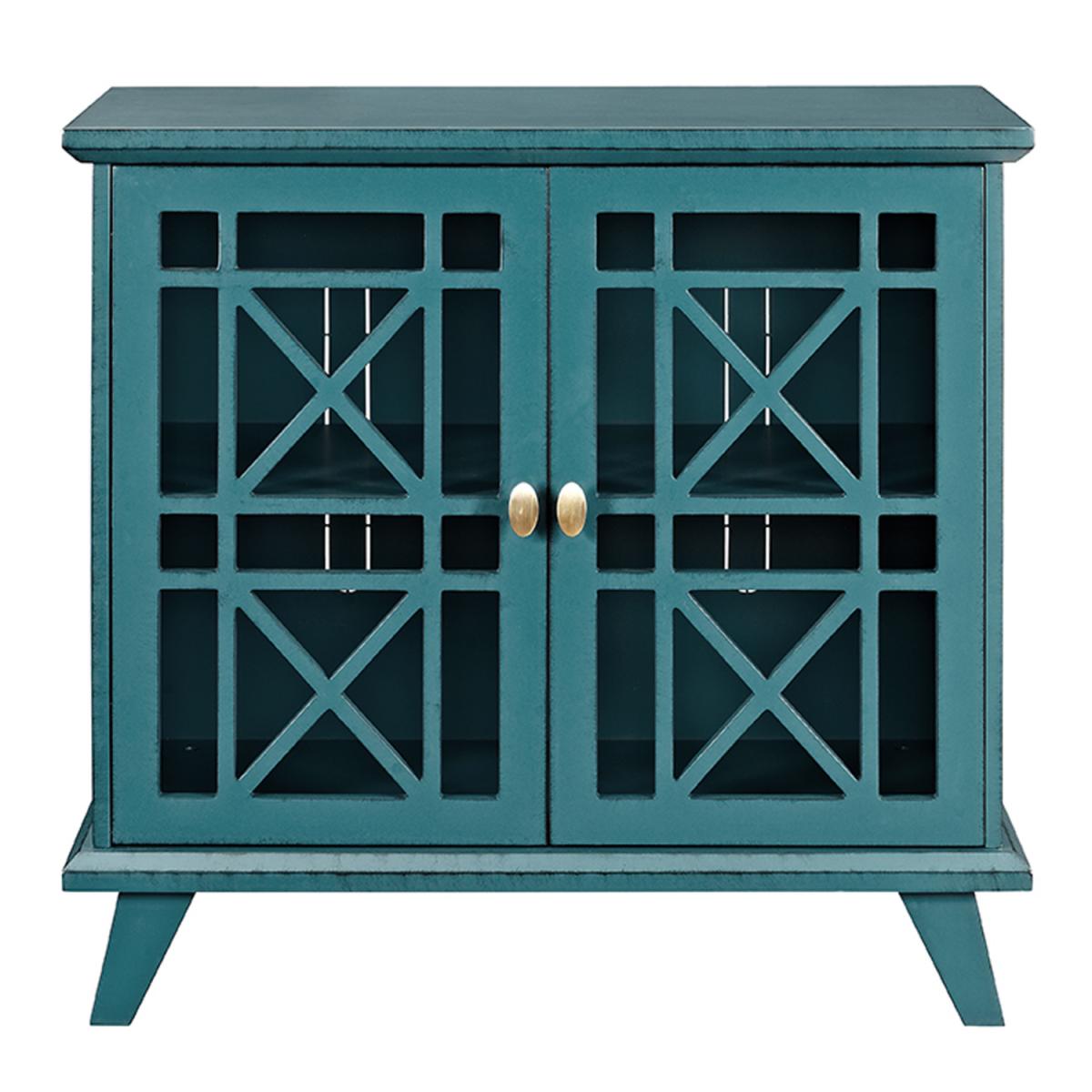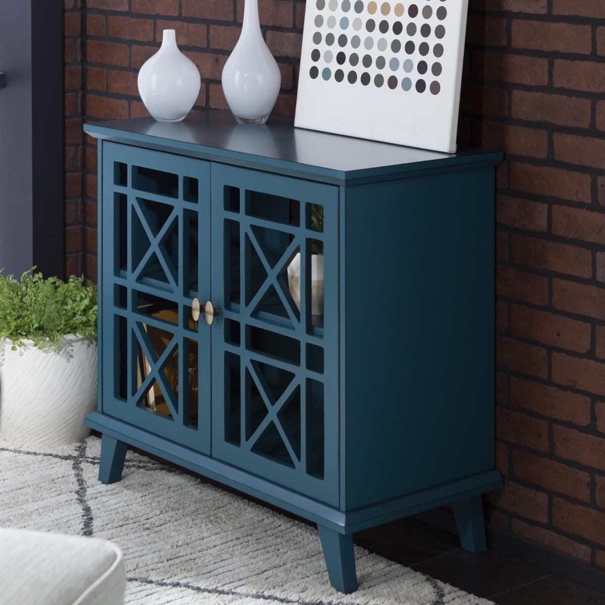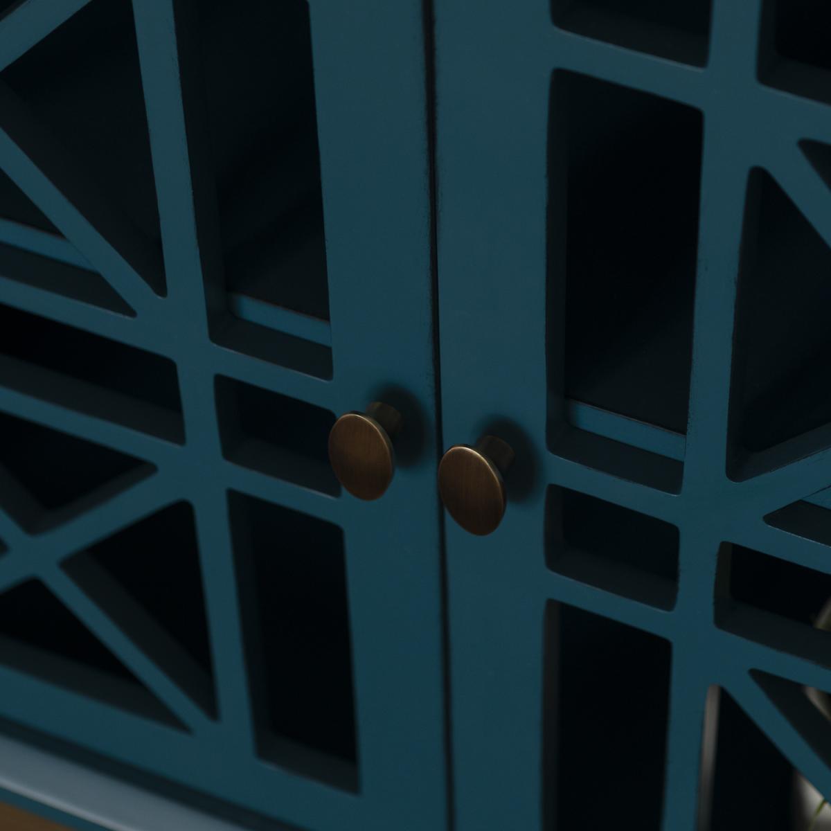 Add character your home with this decorative blue storage hall cupboard. The fretwork doors add an intriguing design for a look that is sure to be talked about. Made of solid wood, high-grade MDF, with wood veneer and painted for a classic look. This combination of practical and decorative create a beautiful accent storage cupboard that will compliment any hallway.