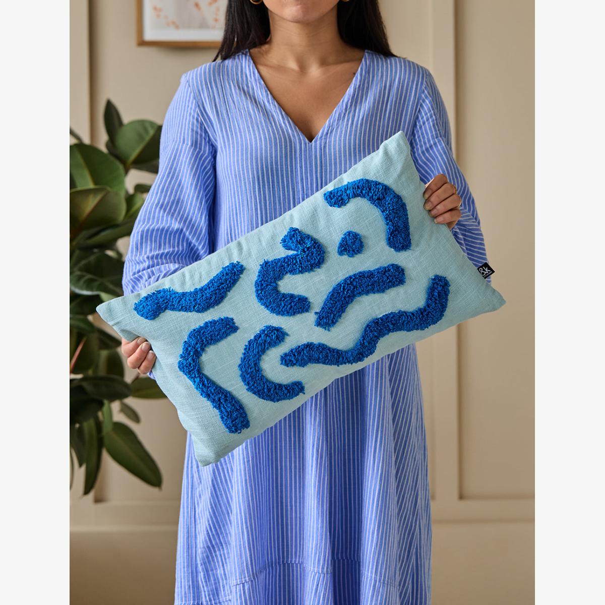 Our cheerful Blue Squiggles Cushion is a colourful addition to any room.