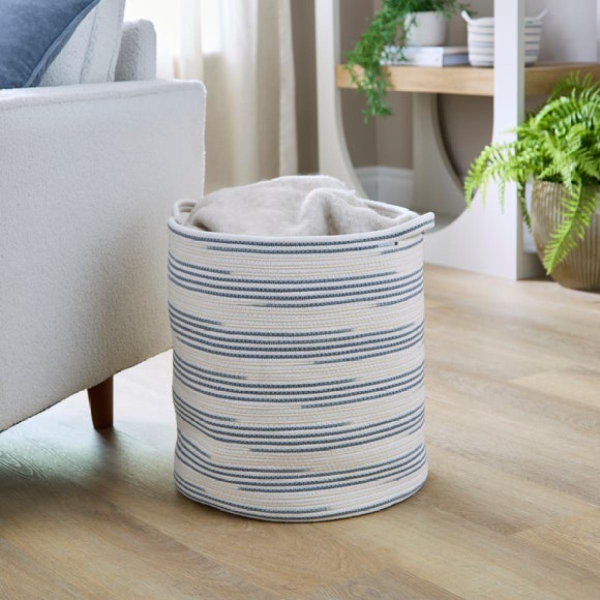 * Coastal stripe design * Made from rope * Hardwearing Add charm and organisation to your home with this robust cotton rope basket. Designed for durability, it offers easy storage and a decorative touch to any room.