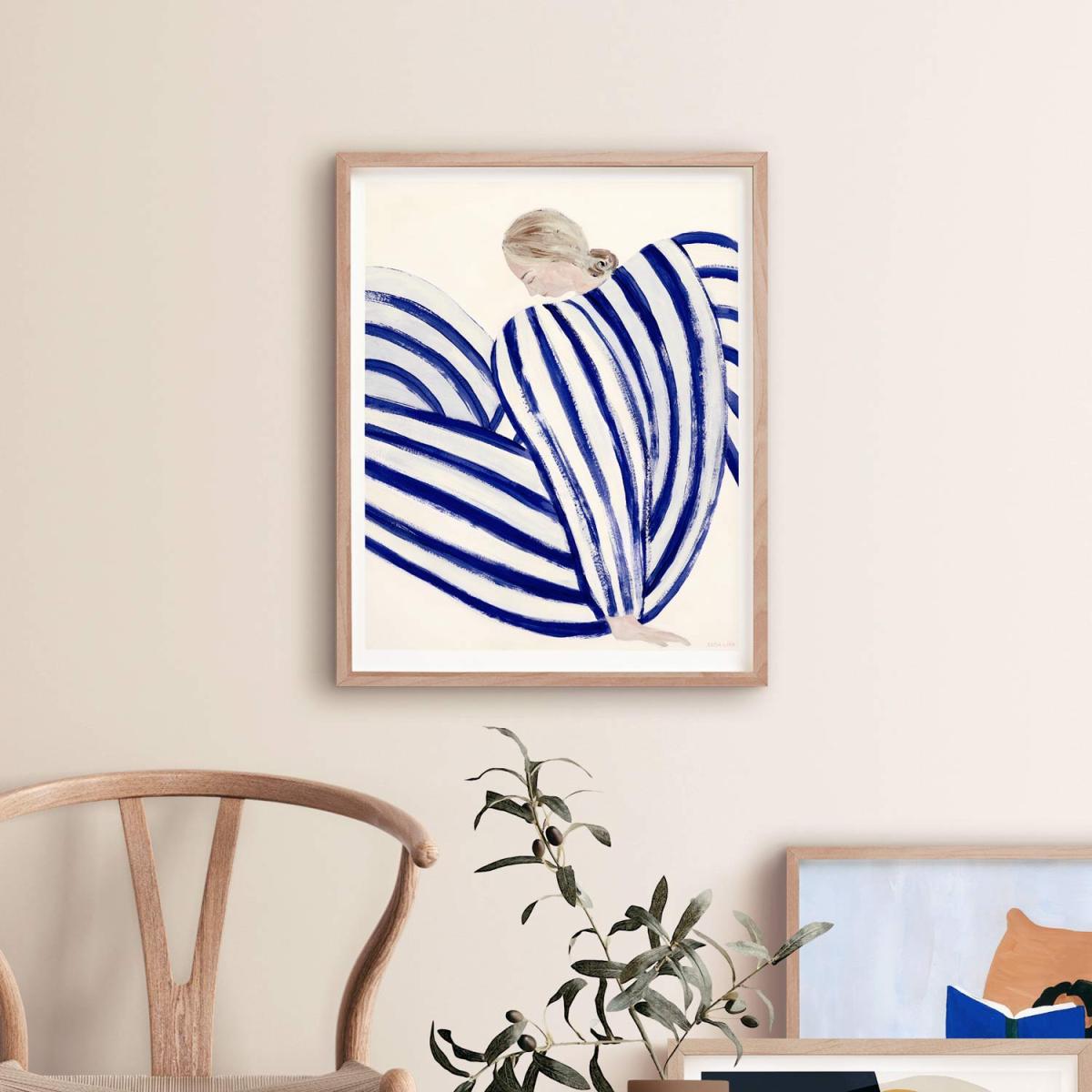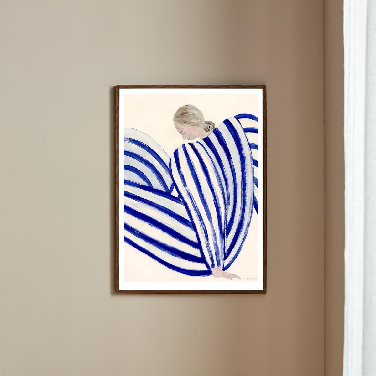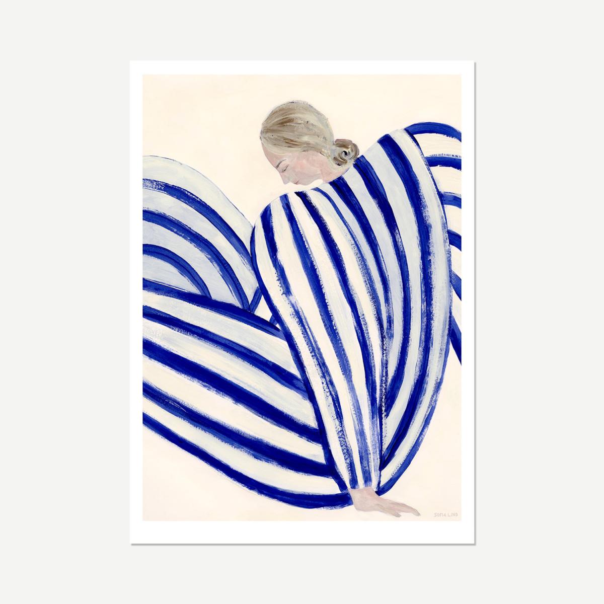 Blue Stripe at Concorde by Sophia Lind helps make up a collection of fine art prints depicting femininity and is imbued with a use of pattern and dusk, originally drawn with charcoal.