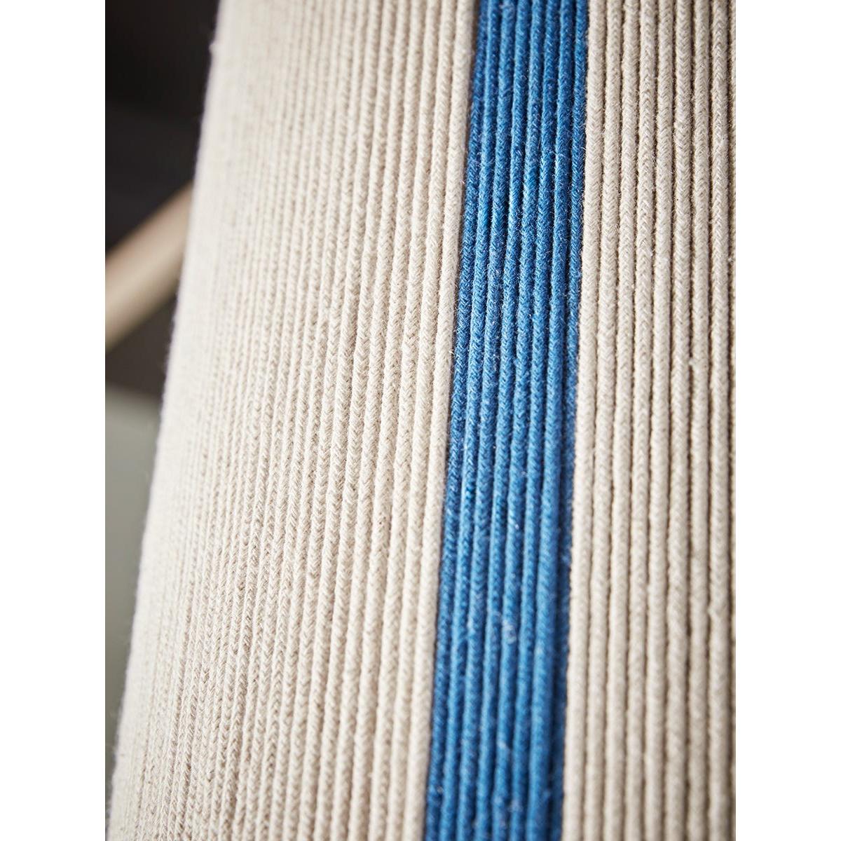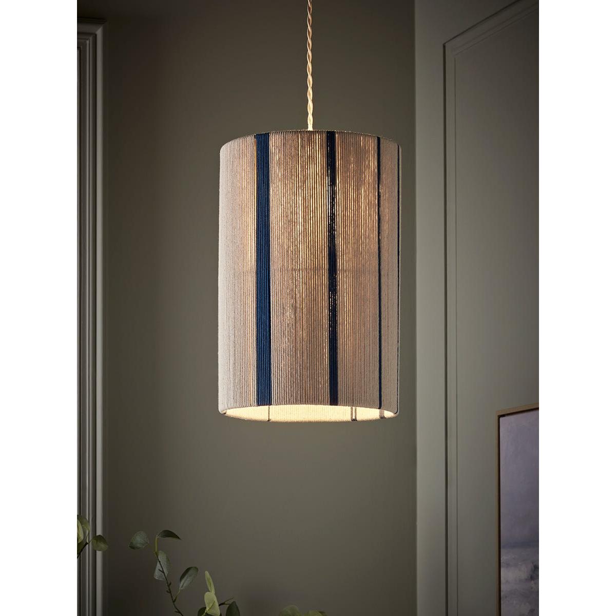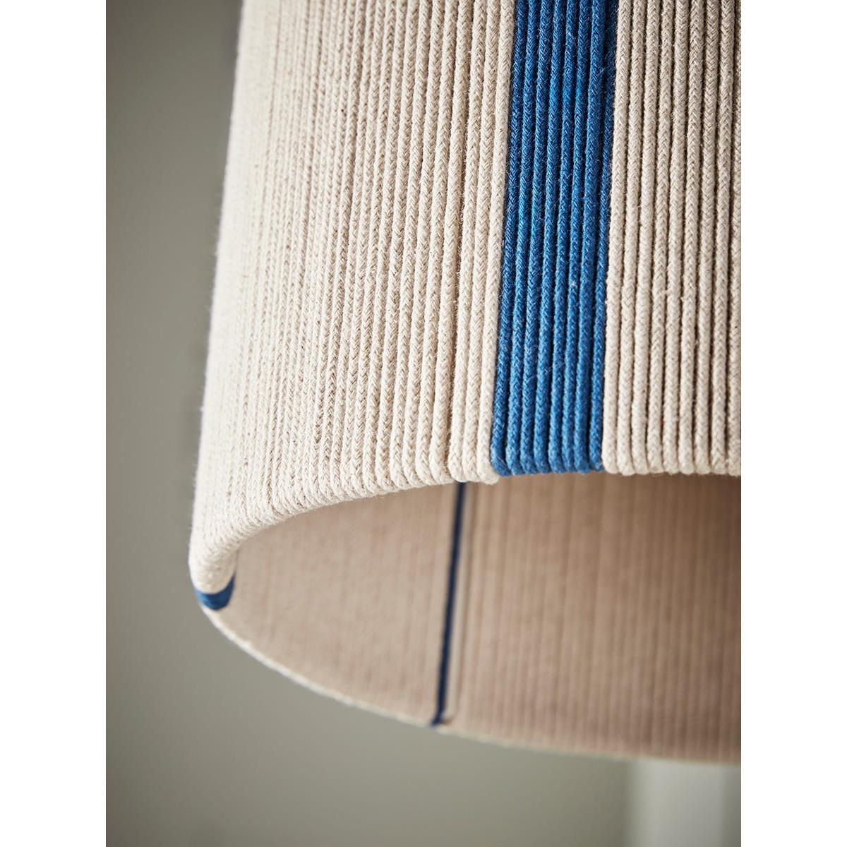 Strings of cotton wrap around an iron frame to create a long and traditional shape that gently warms your home. Interspersed between neutral cotton threads are pops of blue stripes which work to add a touch of colour and brightness to your space.  Discover how to create the perfect lighting scheme for your home using our Lighting Buying Guide.