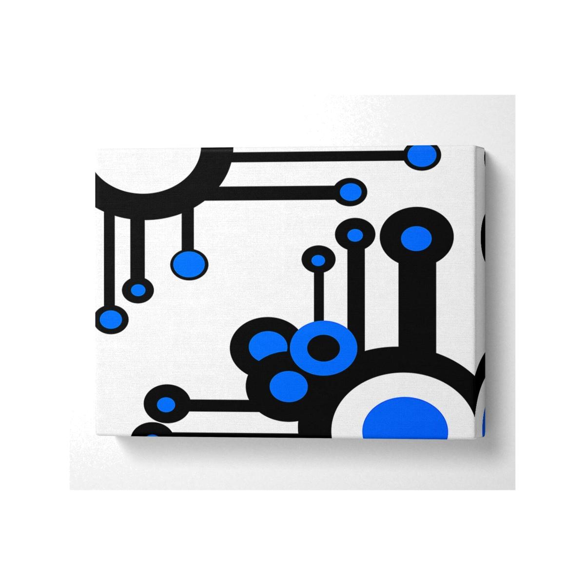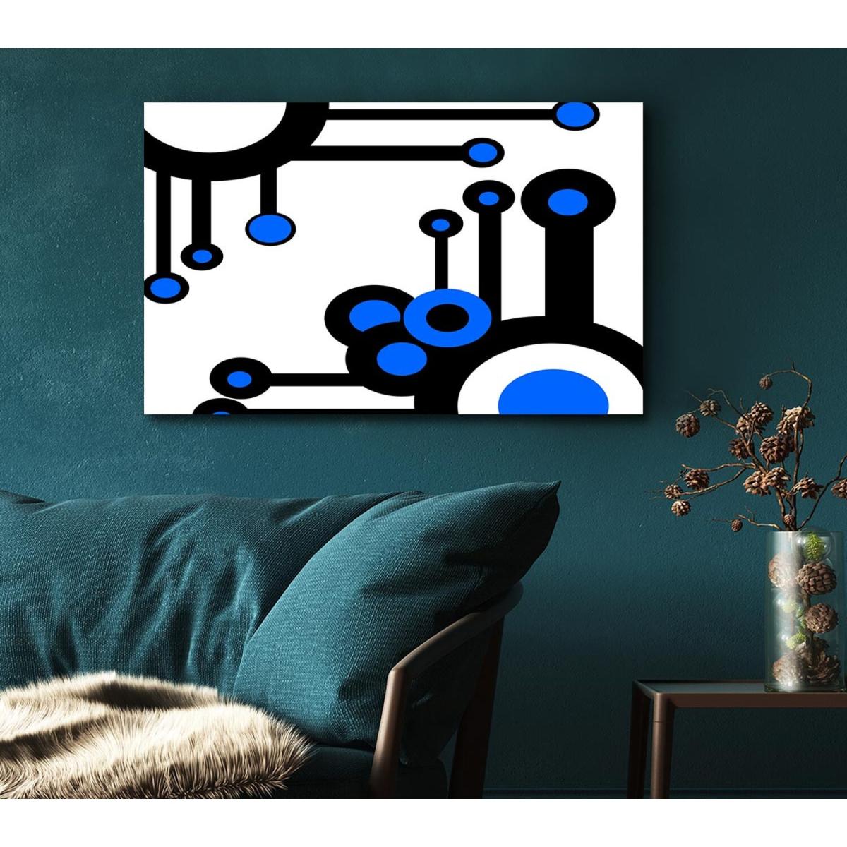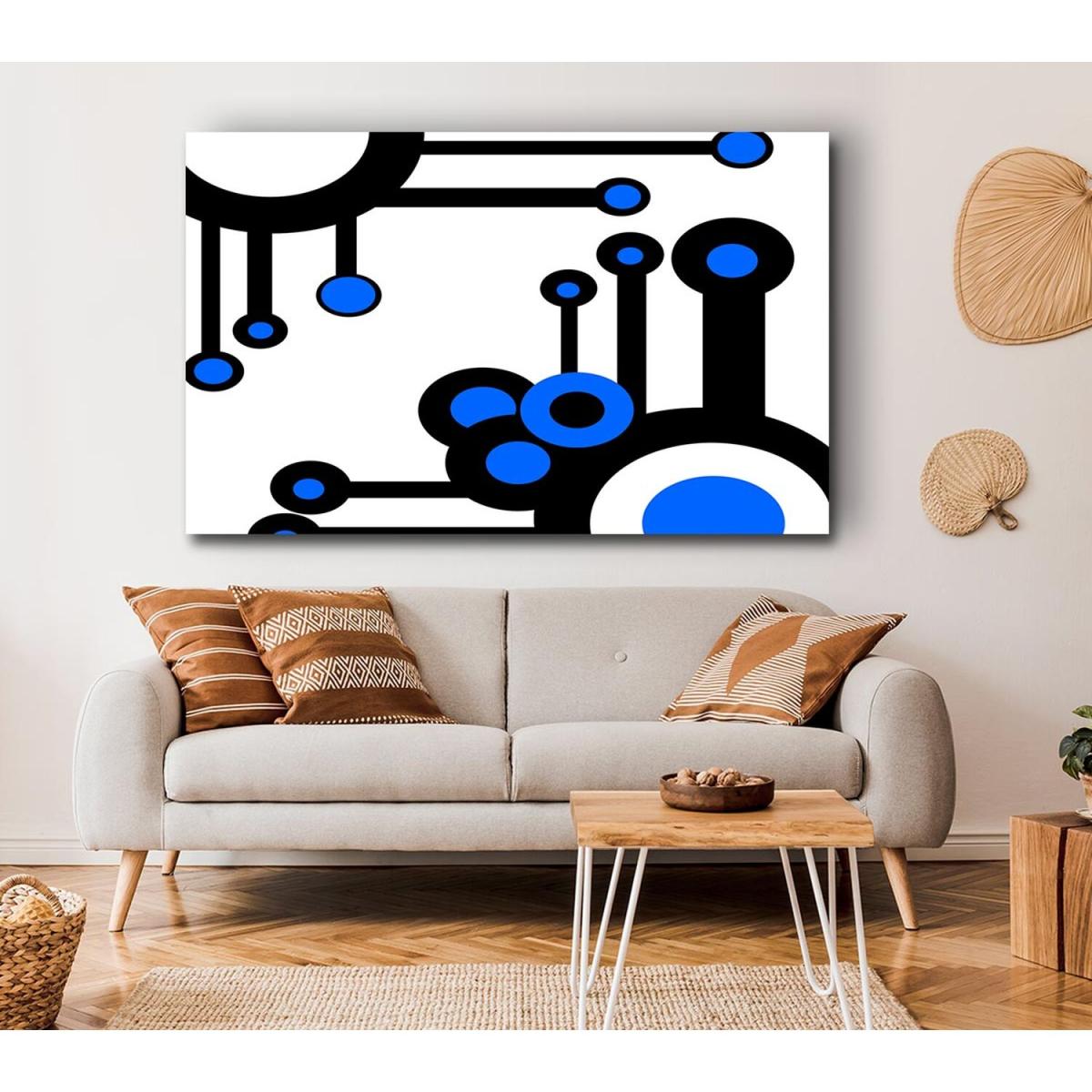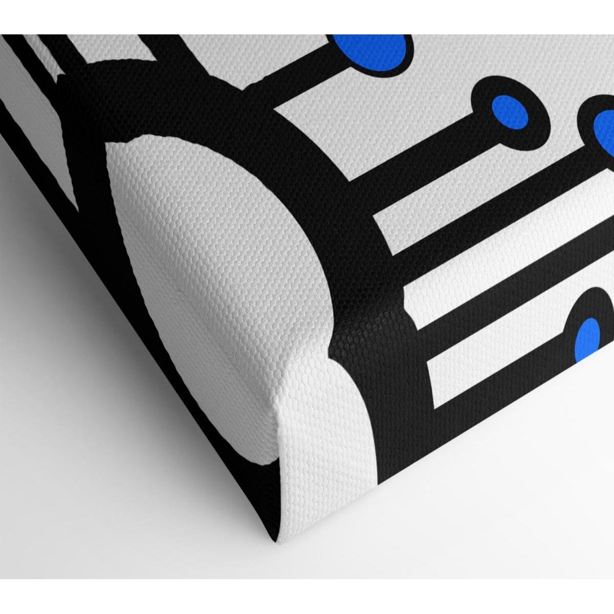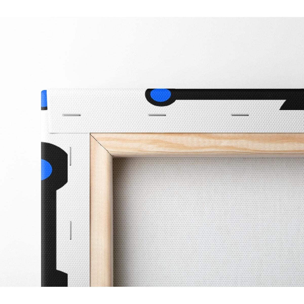 I love this canvas print because of its bold, modern design and vibrant colour palette, which can act as a focal point in a contemporary or minimalist space. The yellow tones combined with the abstract black and blue elements lend themselves well to lighter, airy interiors, especially those with neutral or monochrome schemes where it can provide a pop of colour. Practical styling tips include hanging it above a neutral sofa or bed to create visual interest, or framing it within a gallery wall for a more eclectic look. Its sizeable format makes it perfect for larger walls, helping to define a space and add personality without overwhelming.