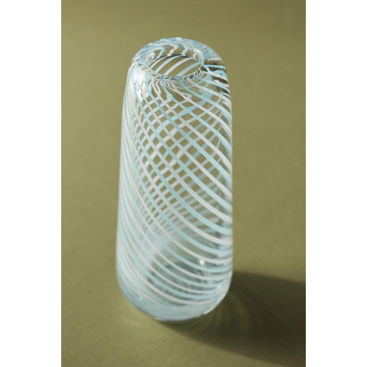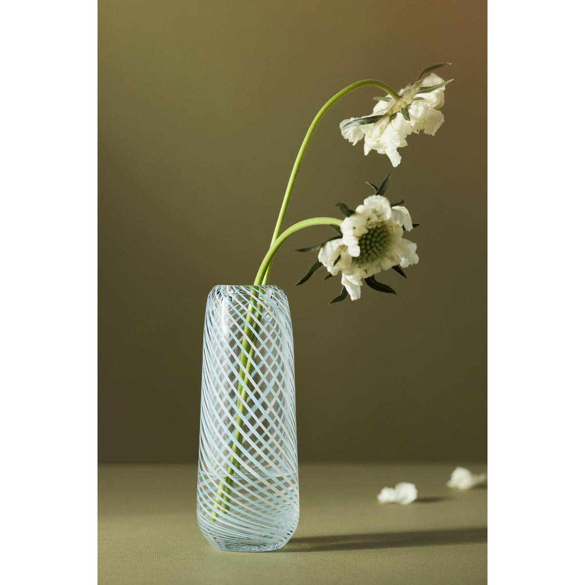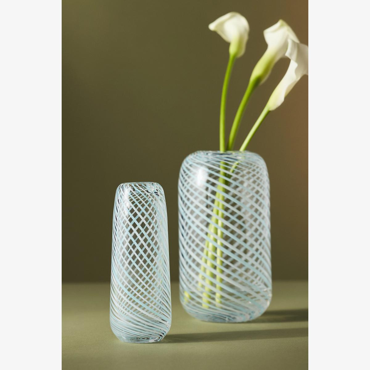 This clear glass vase adorned with a delicate swirl pattern evokes a sense of serene elegance. Blue Swirl Glass Vase by Anthropologie Size: Small